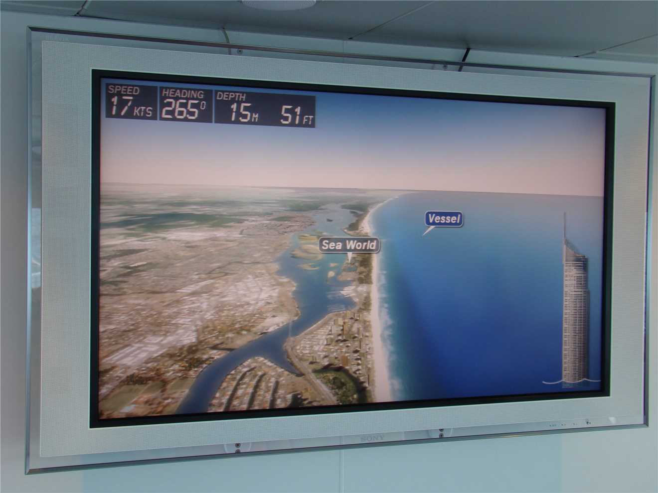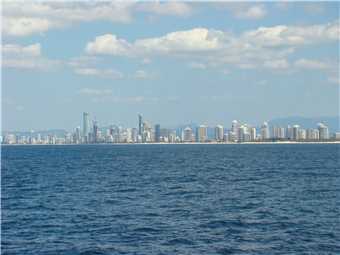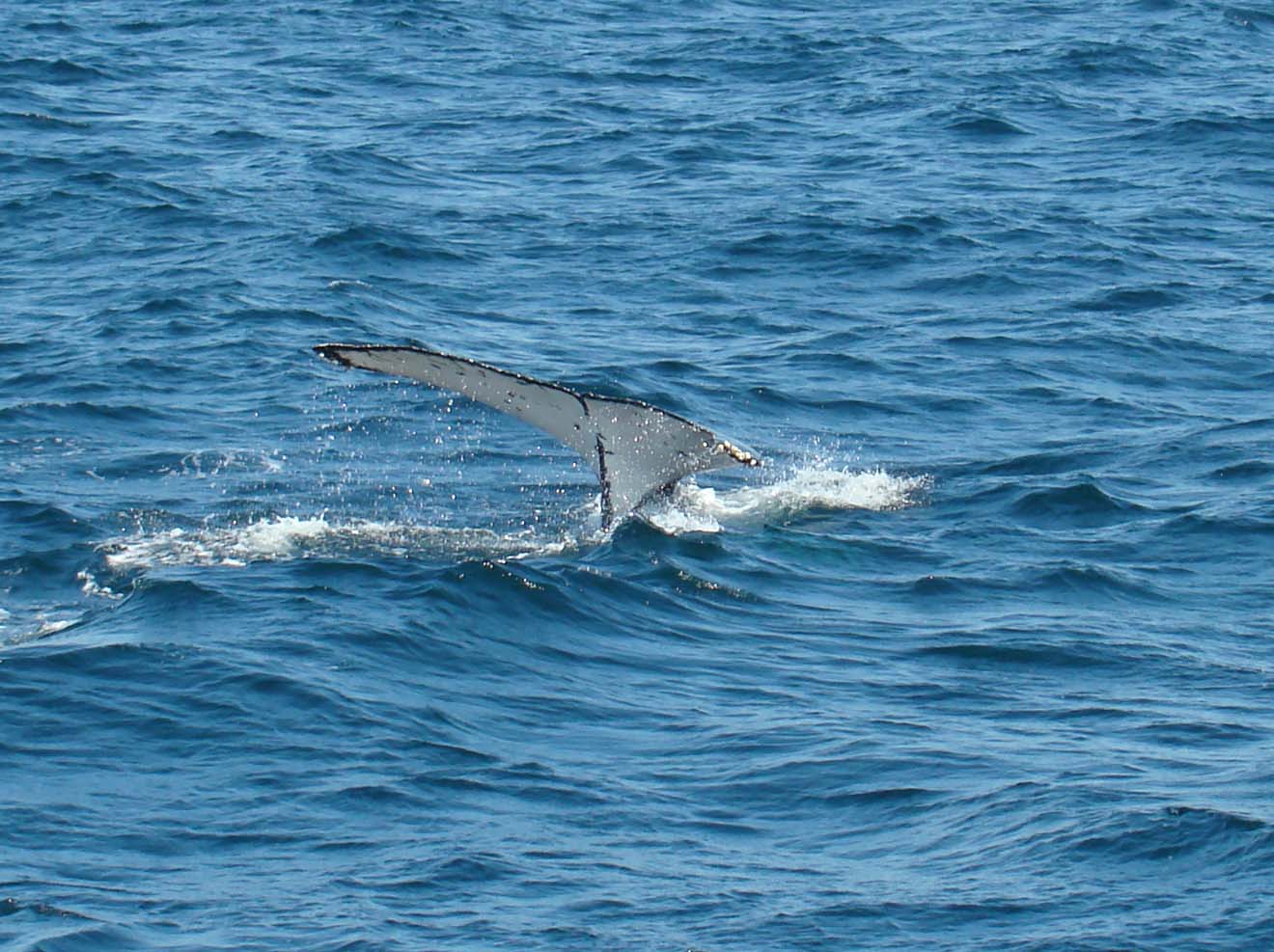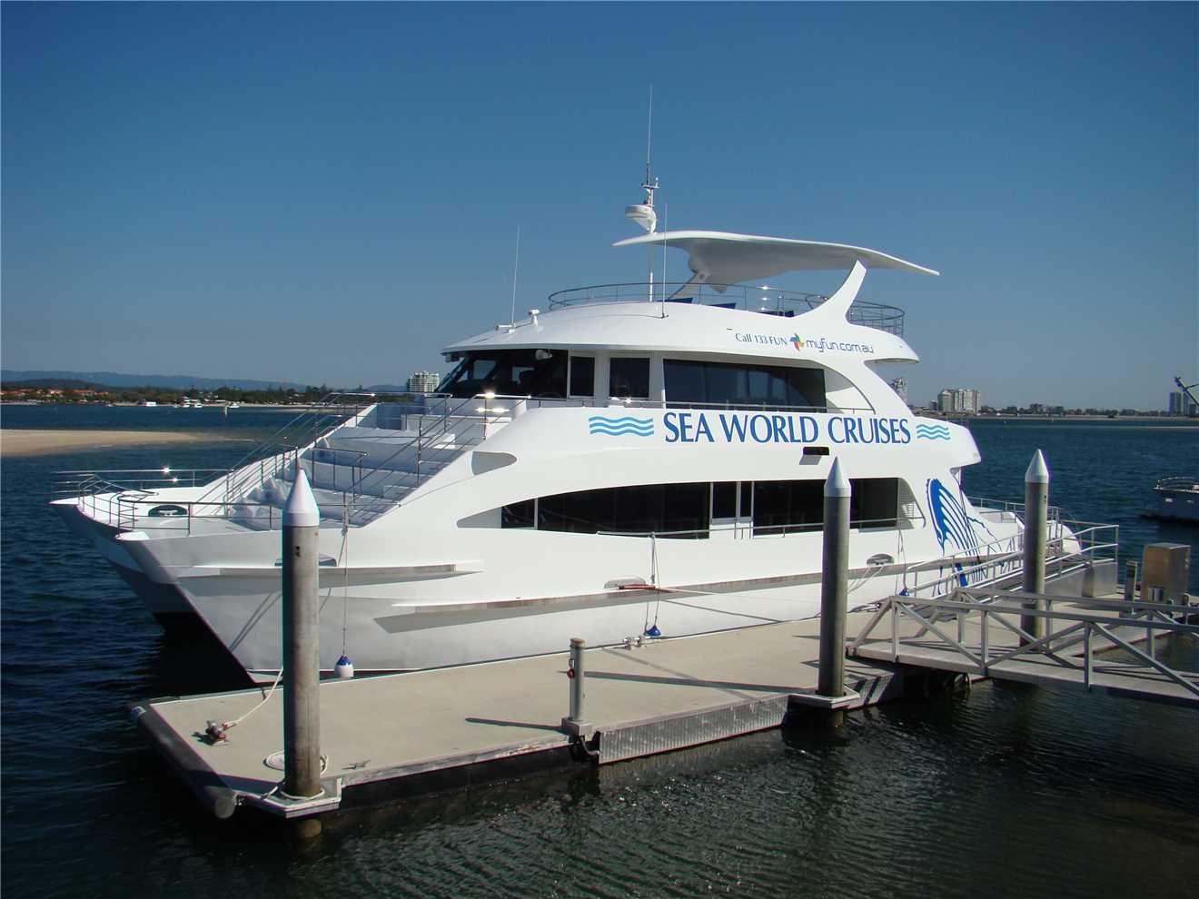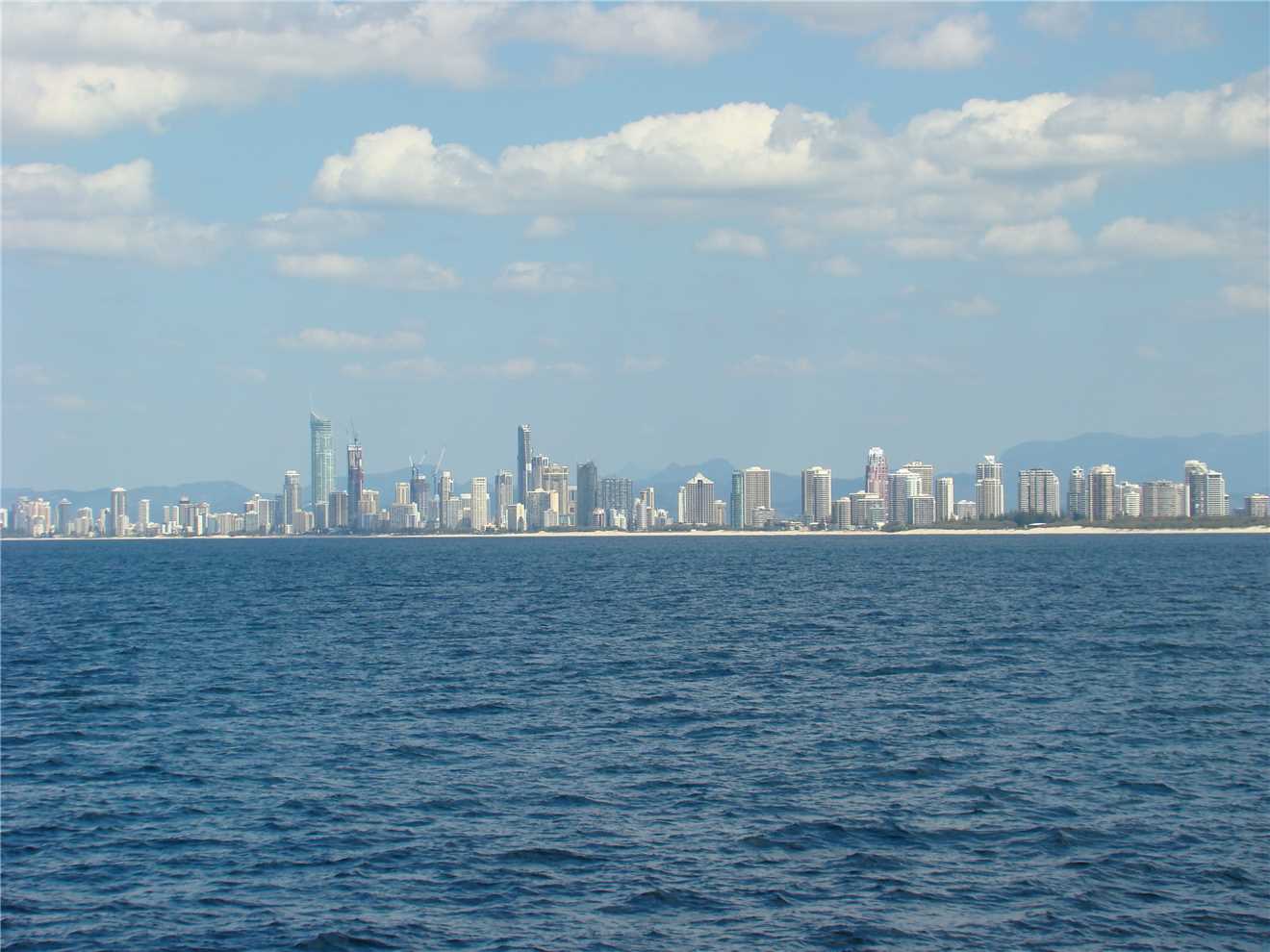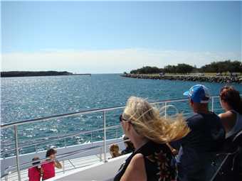 there, boarding was at 9:45am. We were about the 4th couple aboard the SS Minnow aka SS Seaworld, as we were walking up the gangway, we had our photo taken, I can't post it here as I need to scan it. We left at 10am sharp and we could walk around the boat until we were in the Gold Coast Seaway where it is a maritime law that we must stay seated inside, until we have exited the seaway. The boat is a 80ft long by 30ft wide, 3 level Catamaran built in 2008 at a cost $3.5m, it is spotlessly clean, just a fantastic boat and tour, well worth the $99 for 2.5 hours except we paid $77 using our over 50s Senior card. We found 2 large hump back whales and drifted around them for most of our trip. One of them did a magnificent breach (jumped out of the water) with a monstrous splash, but no one caught it on film. Bugger.
