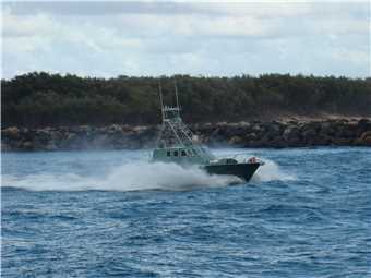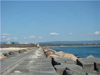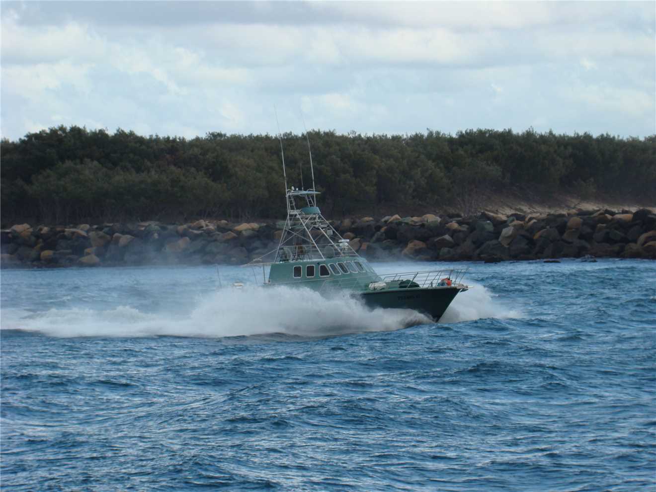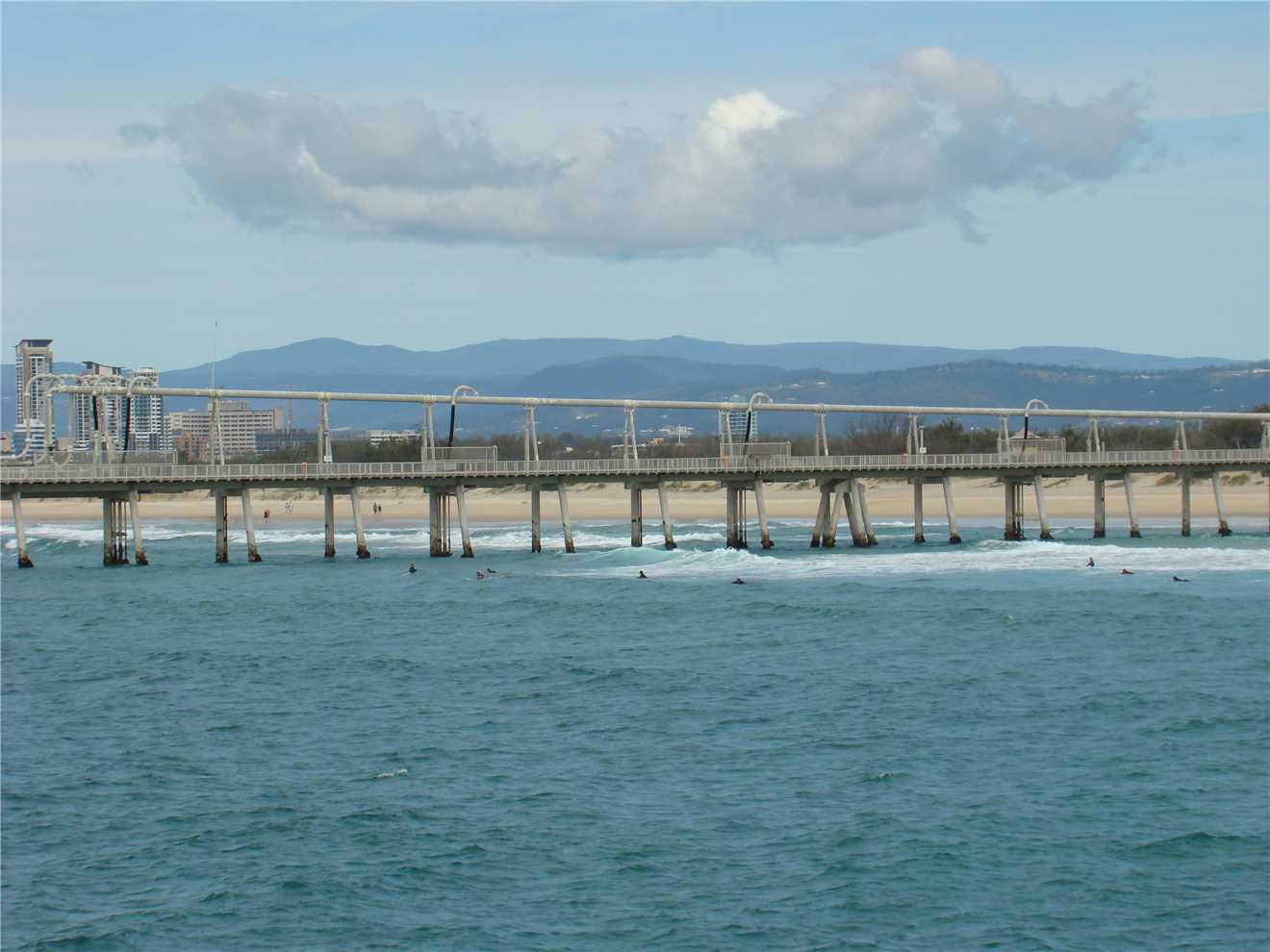 Today, I rode out to the Gold Coast Seaway, as normal, the weather was warm, windy and beautiful. There is a magnificent yacht moored at Southport YC which I am trying to find out about. The strong NW offshore breeze kept the waves low, also while I was out on the seaway, Port Frederick the barge made its way south towards Burleigh Heads. On the way back to camp, I stopped off at Mariner's Cove and checked out the Paradise Jet Boating, this outfit looks pretty good, I think that Marg, Luke and I will probably go jet boating over the next 3 weekends.