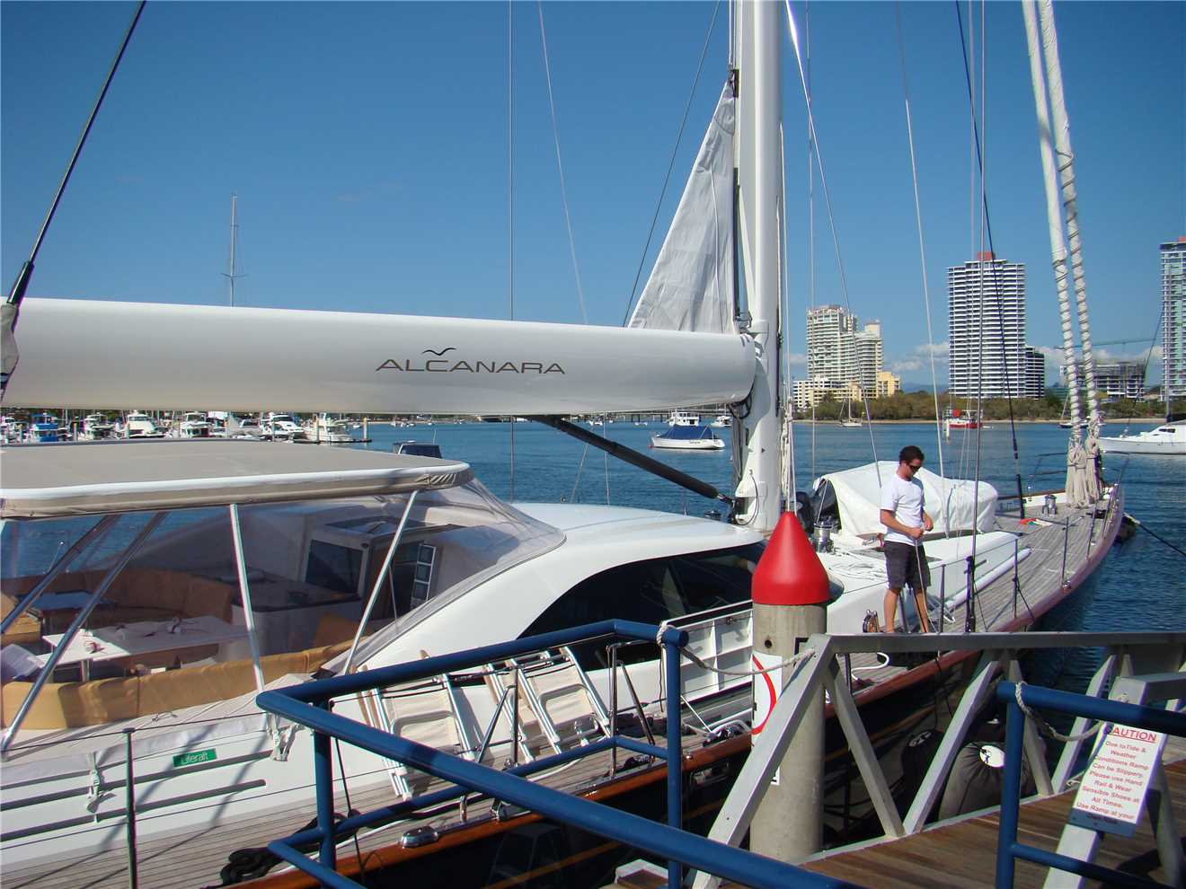 Upon further investiagtion, I saw the name on the boom and googled it. Alcanara, 96ft fast cruising yacht, launched Dec2008 built by Steve Ward in Perth.