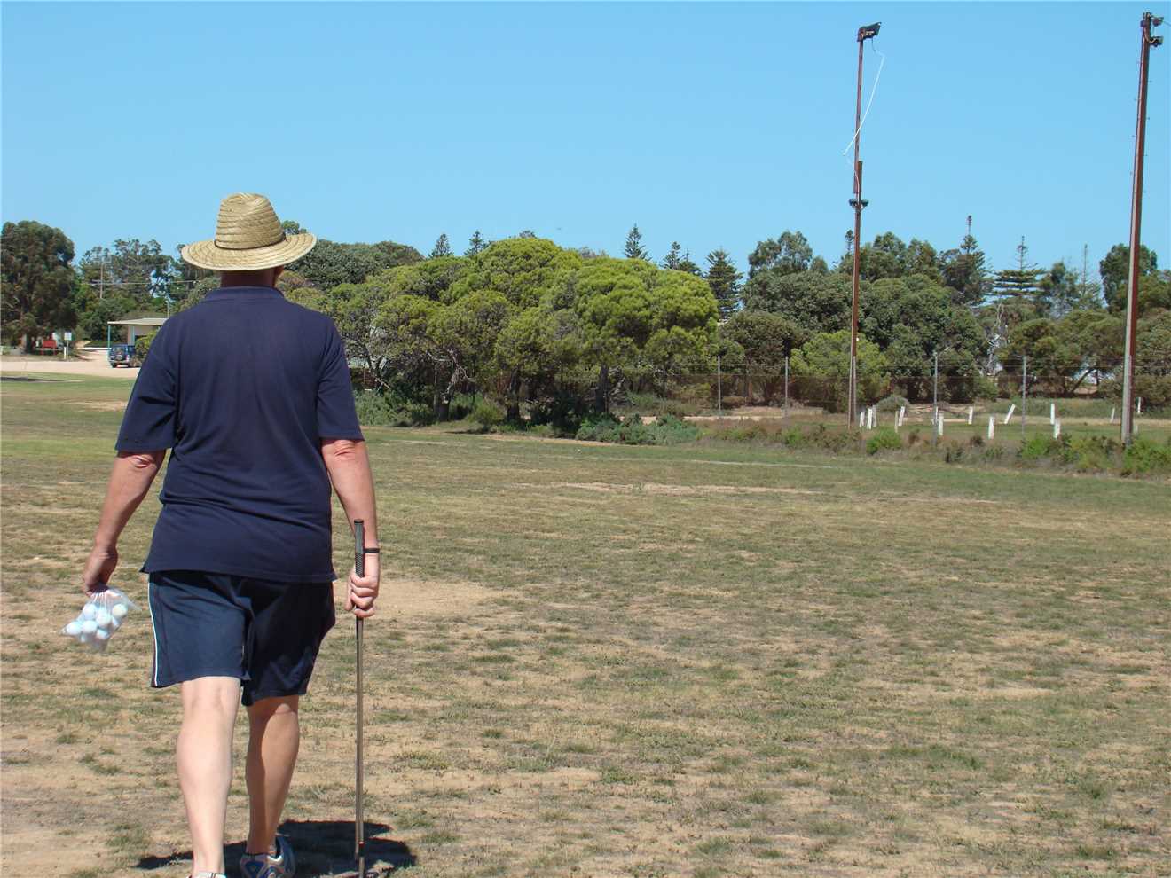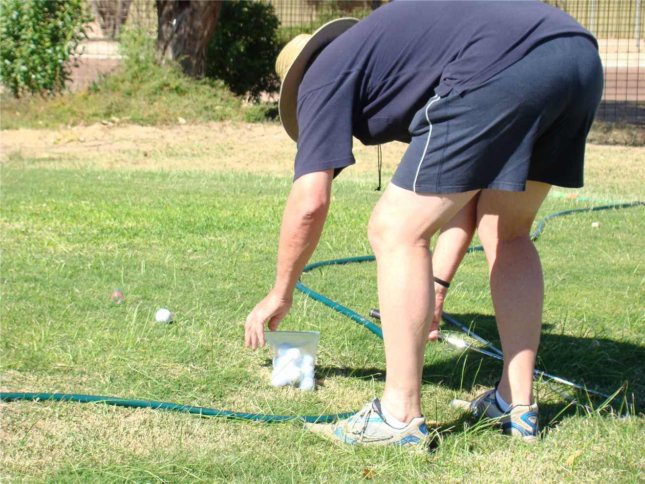 a snap tight plastic bag of used golf balls, that Bazza my neighbour gave me, I walked over to the tee, which just happened to be the ladies. No big deal,