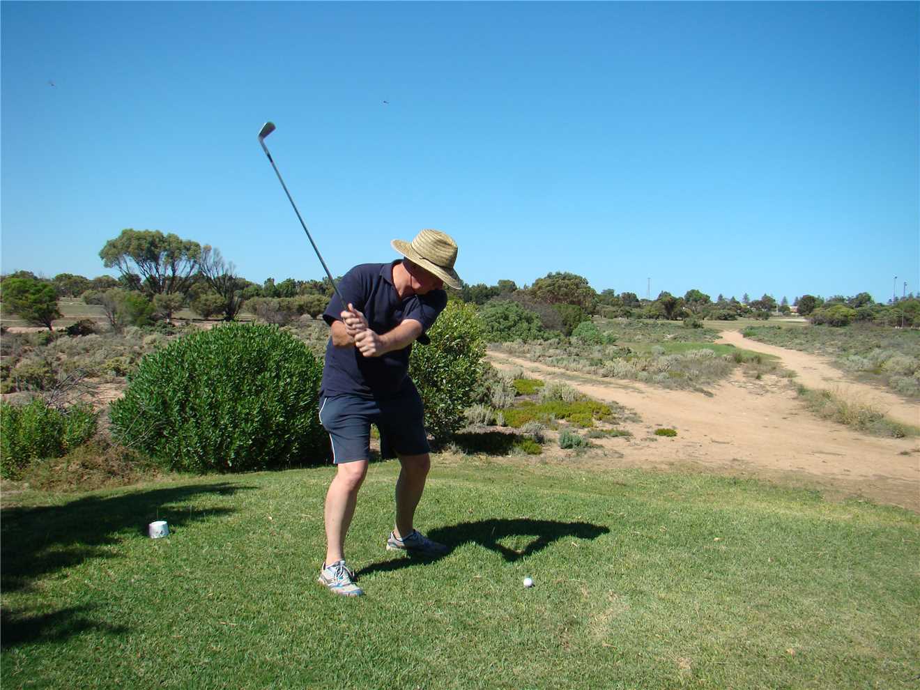 use it, so I just rested my ball on a very nice tuff of green stuff. Another warm up/practice swing, and I was ready, this time I didn't stuff it, as such.