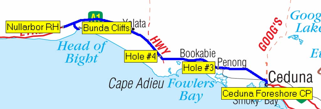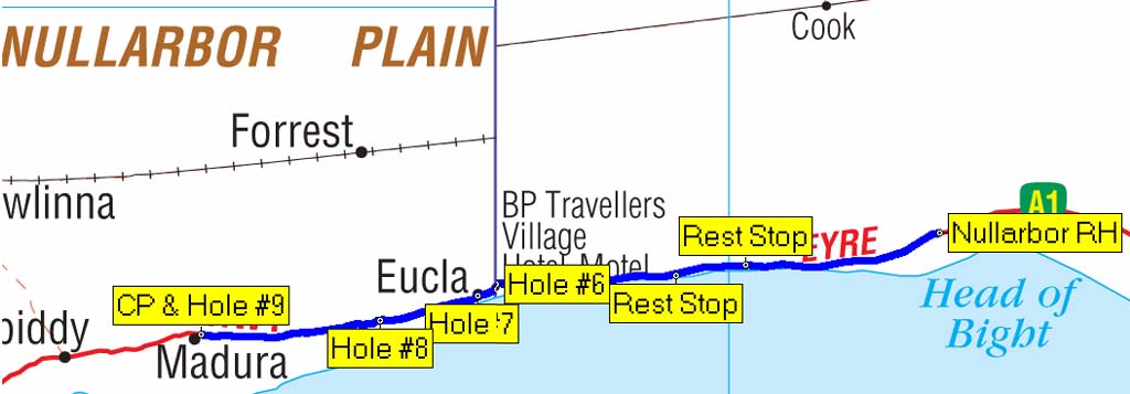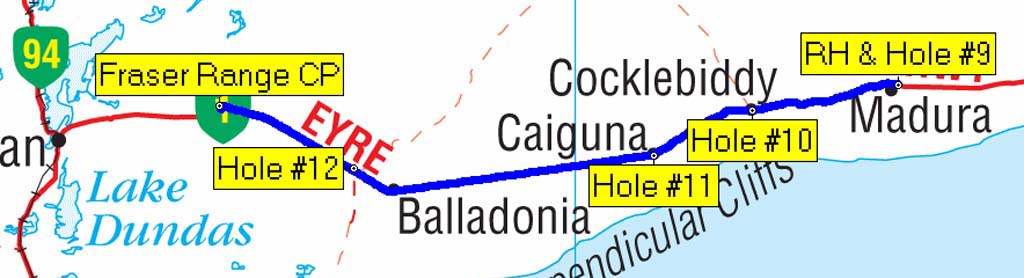 Tomorrow, we have lost Internet reception, and head on to Cocklebiddy-Hole 10, Caiguna-Hole 11, Balladonia Hole 12 probably stay at Balladonia.