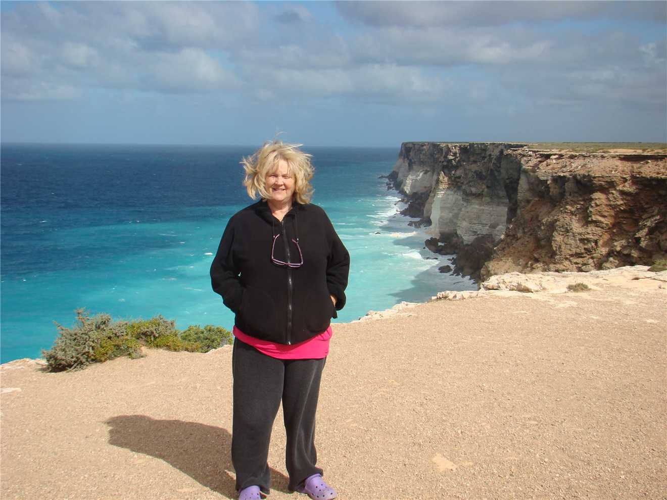 Apart from the golf today, or lack there of, we did stop along the Great Australia Bight and took photos of the dunes and the Bunda Cliffs, they truly are beautiful. We did cross the SA/WA border and was checked at the Quarantine station, the lady checked the van's fridge/Freezer and cupboards and the fridge in the car. All passed. The traffic was extremely light, we stop at each roadhouse and top up with fuel, I will give you a summary of all our Nullarbor fuel stops when we rest at Norseman. The wind today was about 20kph Southerly maybe a little more, some of the photos will show Marg's hair being blown everywhere.