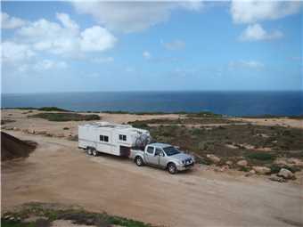 We stopped at the Nullarbor sign and then got to the Nullarbor Roadhouse at 1:45pm and setup camp and unhitched. We then left the fiver at camp and drove