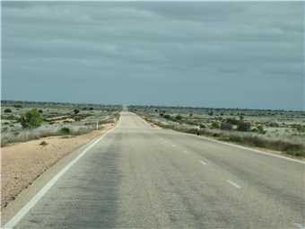 This was the start of the 146.6kms straight road, the scenery across the Nullarbor was interesting. The scrubbery on the plains plus some emus on the side