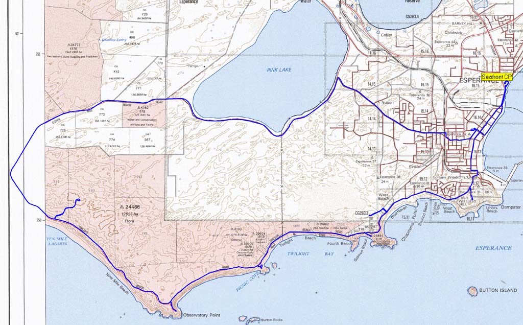 trail. It turns out that we drove about 10kms from Ravensthorpe into the Ravensthorpe Ranges, where we followeed a fire track across the ridge and finally