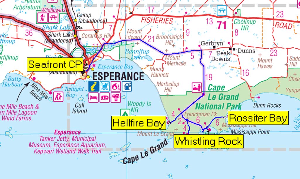1st cache was at the lookout in the Ravensthorpe Ranges, 2nd cahce was at the Vineyard along the firetrail that we drove 2 days ago, 3rd cache was at the Mt Chester Lookout, 4th cache was at the old Ravensthorpe cemetery, 5th cache was at Hawk's Nest, this was the old site of the Ravensthorpe township, and finally the last cache was at the old Cattlin Mine site.