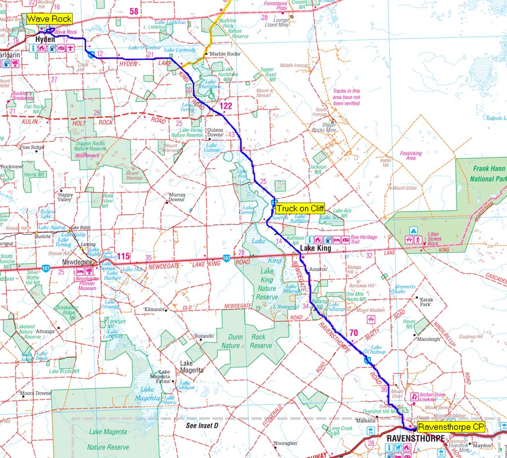 - Weather: Sunny with blue skies with a few drops of rain on the way back from Wave Rock. Probably got to mid 20°s.