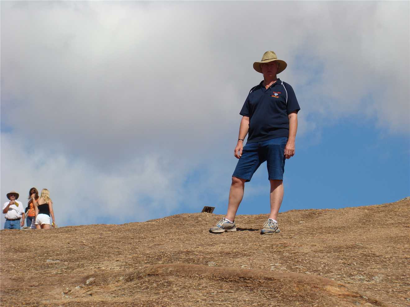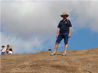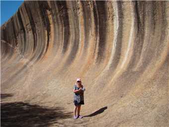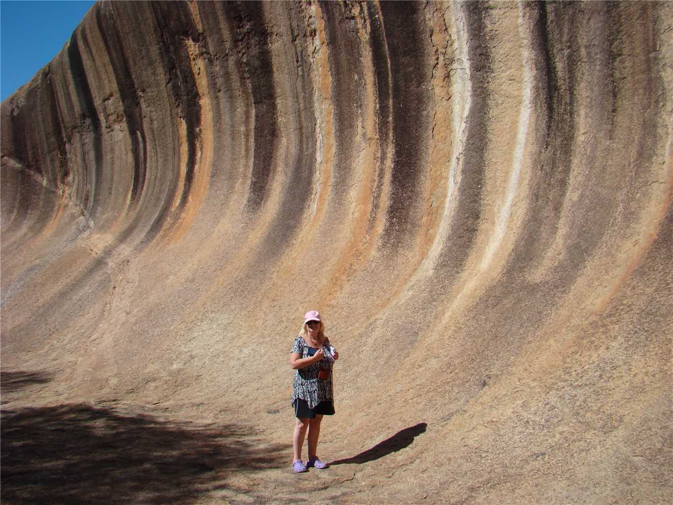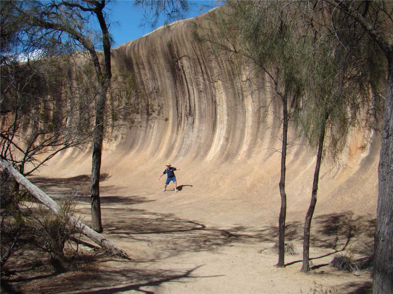 to took my photo in my old surfing pose, as one does at Wave Rock. I rode the wave without being dumped, a great effort. We decided not to walk the 3km