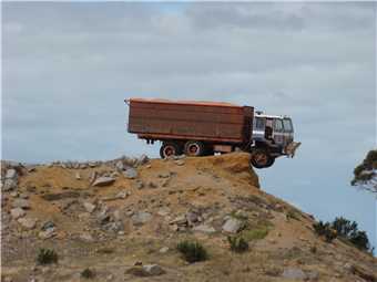 I forgot to mention, on the way here, we drove past a truck stuck on an outcrop, so on the way home, we stopped and took photos of it. Very weird. As we