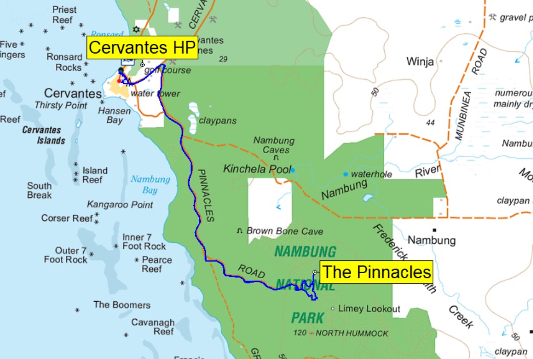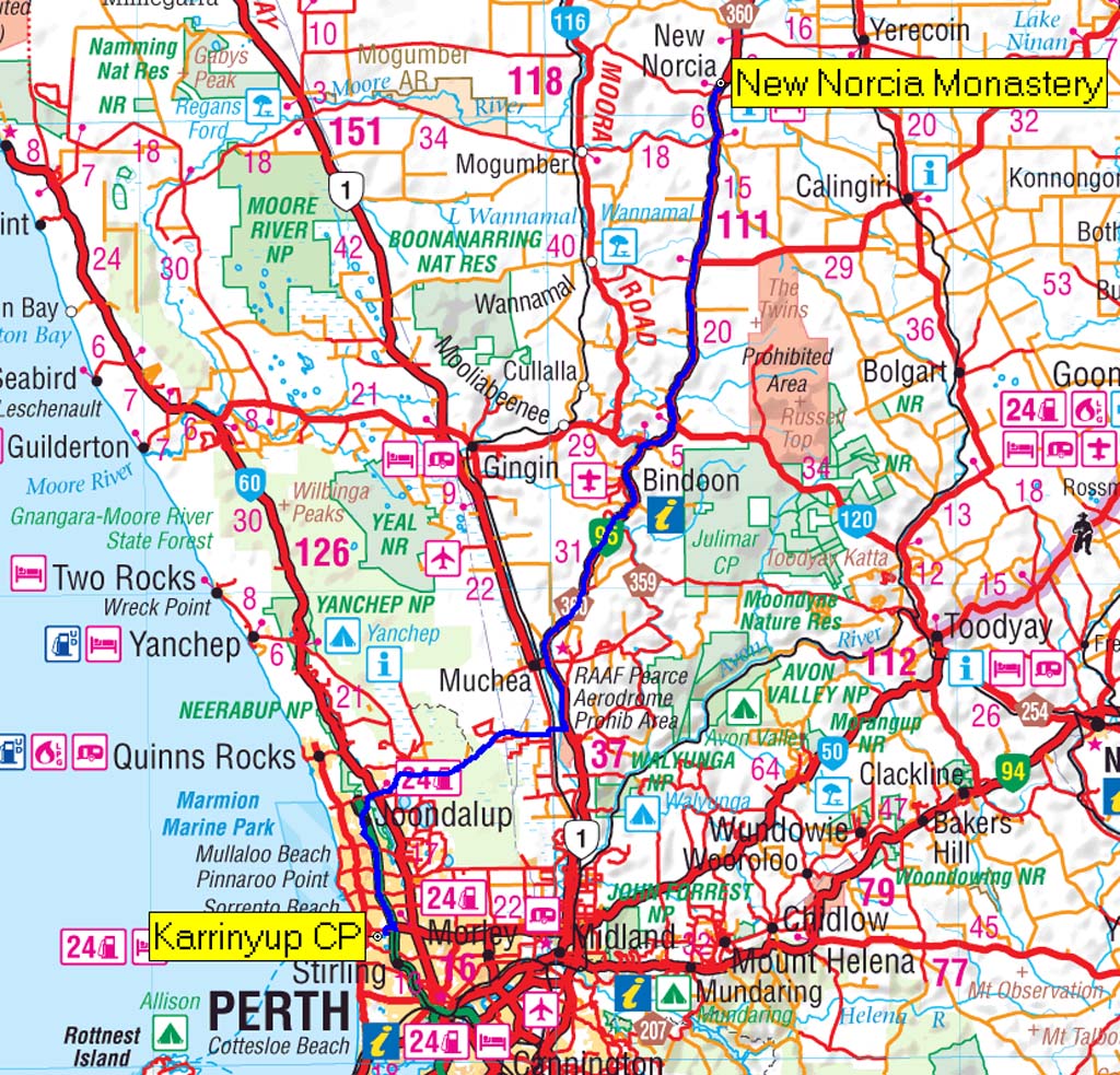 We left Karrinyup Waters Resort at 8:53am and drove the 191kms to The Pinnacles CP, Cervantes. We turned left and headed to Karrinyup Rd, because it was a lot easier to get onto the Mitchell freeway and then headed North and finally got onto Wanneroo Rd, which turns into the Indian Ocean drive.