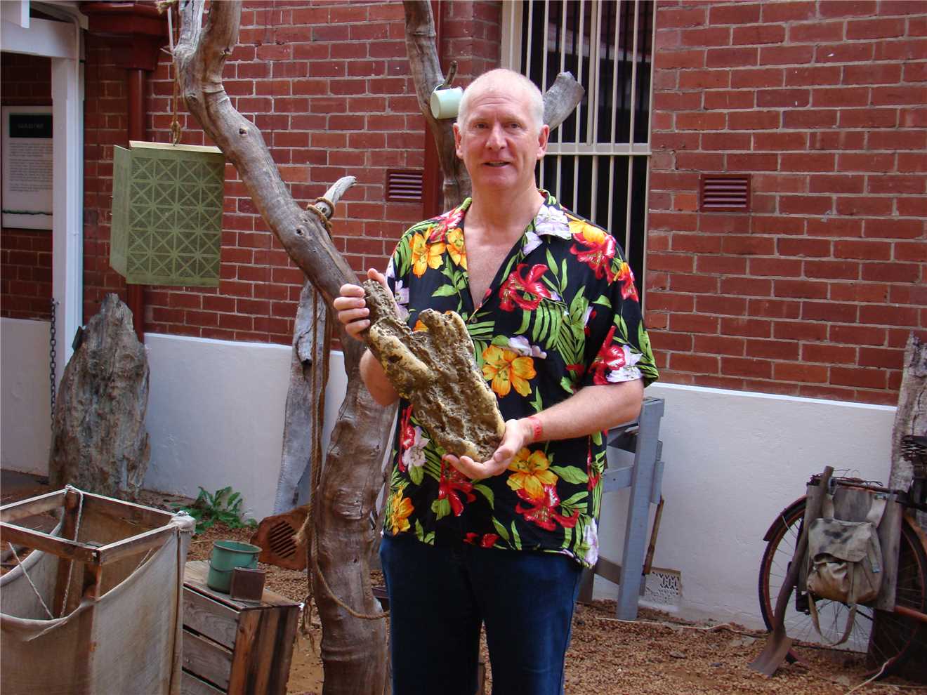 About mid afternoon, actually 2:45pm thanks Harry Hema, Marg and I decided to go caching as there were 5 caches around Cervantes. The first cache was at Thirsty Point, we couldn't find it. Bugger. 2nd cache was at Lake Thetis, Marg found this one. Our 3rd cache was on the other side of the lake, so we walked over to it, via the Stromatolites observation decking. Marg found this cache, check the photo, the guy had drilled out a rock and glued a plastic film case in it. Brilliant. We didn't go to the 4th cache as it was further out of town, we may do this tomorrow. The last cache was in a park in the centre of town, but we couldn't find it, so we went to the Tavern and I bought a slab of beer.