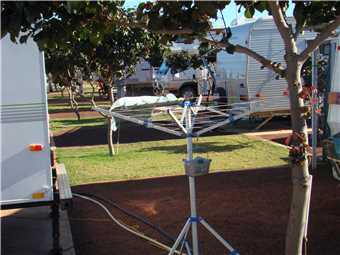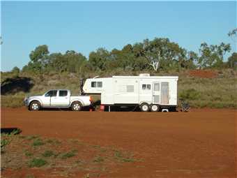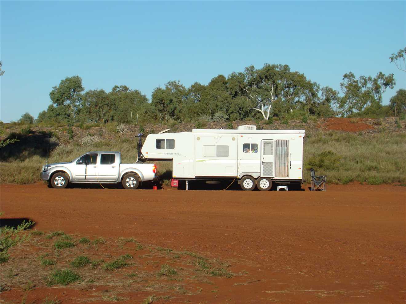 Ok, back to the rest area, we were NOT first van to leave, probably about the 8th to leave, but we only had 200kms to go, so we were in no hurry. We woke to the norm (Cloudless, blue skies) the wind was building, as it was starting to blow the dust off the gravel. We packed up, which wasn't much, only packing the generator in its storage spot in the front of the fiver.
