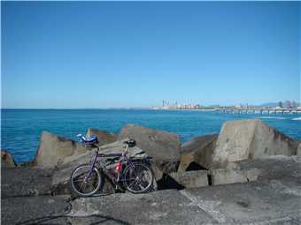 Back to our normal day, laying in bed watching 'Sunrise' and then I turned into Cycleman and rode off to the seaway beacon. The ocean was rougher than yesterday.