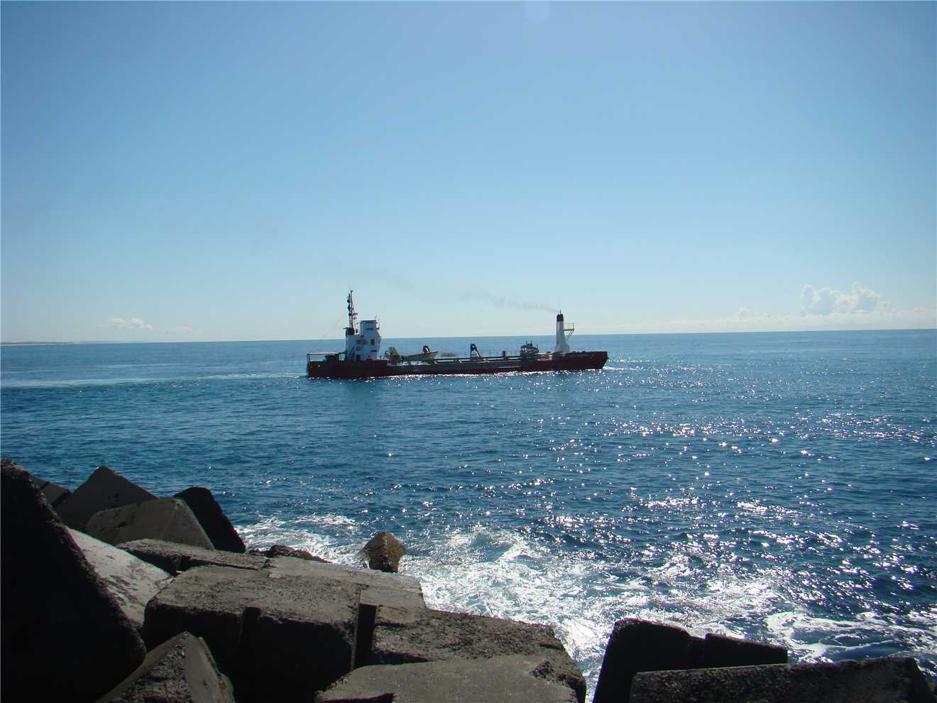 The morning was still beautiful, so I rode out to the seaway, it was very pleasant just sitting at the spit watching the dredge clearing the entrance.