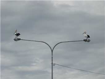 I then rode up towards Runaway Bay, I haven't been that way this year. Believe it or not, nothing seemed to have changed, except that the 3 storey apartments are now finished and occupied and look rather nice. The usual sight of seeing pelicans sitting on the street lights are becoming more common, today George and his brother George were waiting for me, so I had to stop and take photos. I waited for a good 10 minutes for one of them to fly off, but the buggers were quite happy just standing on the light.