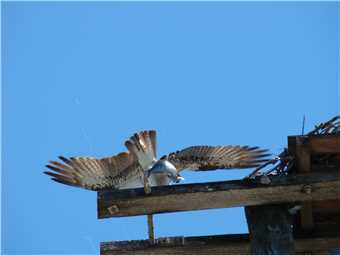 Oopps, Mum osprey nearly lost her footing.