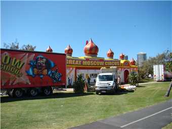 Marg and Jodi and family had tickets for the 4pm show at the Moscow Circus, which is about 2 kms from camp, too far for the child to walk, so I offered to drive them as I was not going. Not my thing.