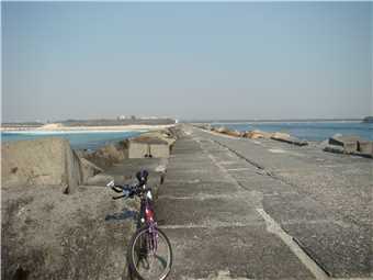 is a dog allowed beach. Well it was chockers, dogs everywhere. I rode out to the end of the seaway and the haze was very thick, you could just make out the