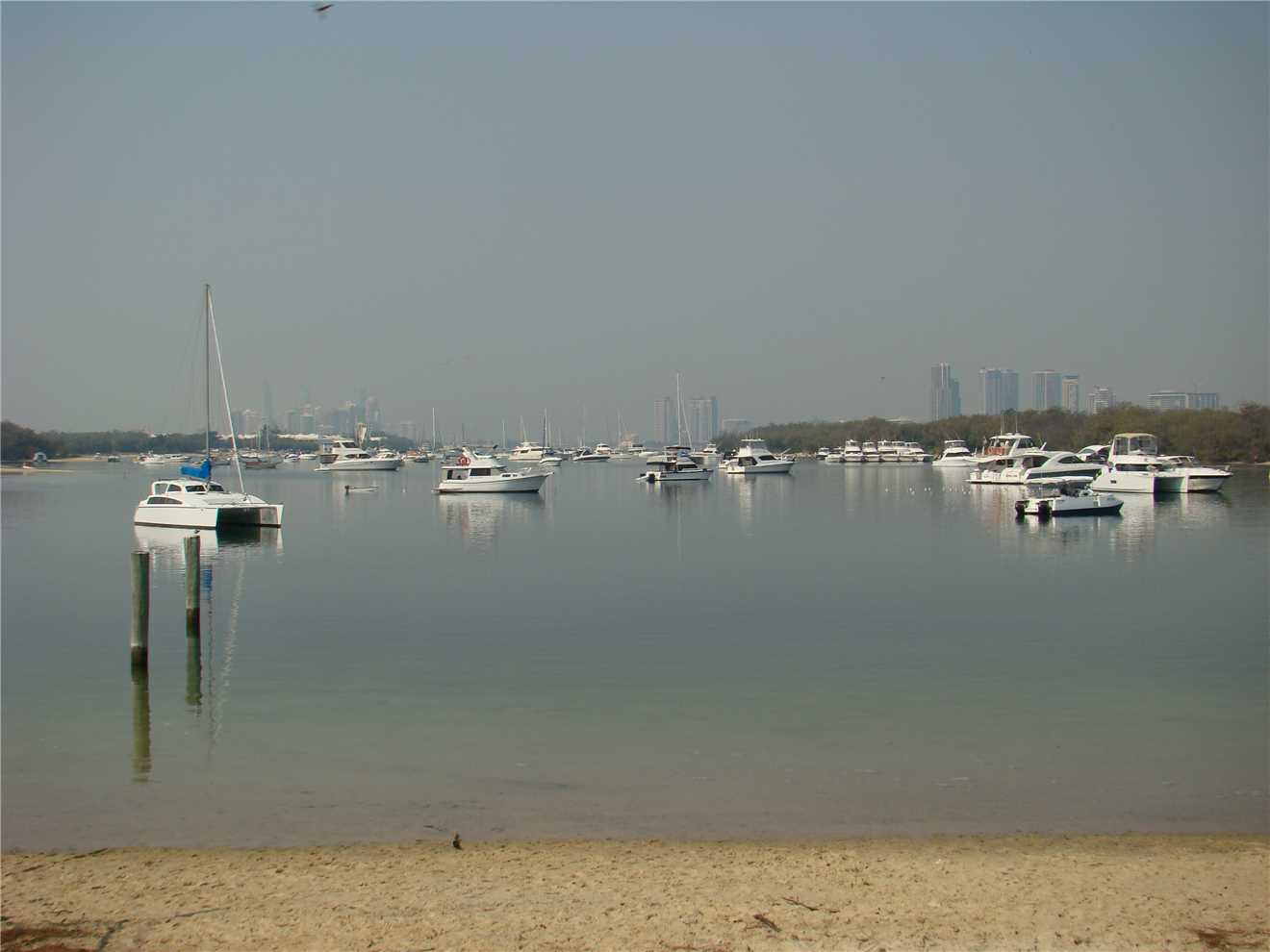 Surfer highrises in the distance and couldn't see any of the Hinterland. The weather bureau said we need a few days of South Easterlies to disperse the smoky haze, by Wednesday it should be gone. We will have to wait and see. Anyway, enough of the smoky haze, as I left the seaway and headed past the park, there was some guy flying something, I thought it was a helicopter, but after talking to him, it is call a Drone with 6 rotors, it was one unreal looking machine, he even had a video camera mounted to it. In the little bay, where there maybe 20 boast moored it was like Bourke St, there were probably close to 100 boats. again they were everywhere, you could nearly walk across boats from one side to the other. Riding back to camp, I noticed every picnic table was full and it was only 9:30am, because it was going to be a hot day, the beach was very popular, very early.