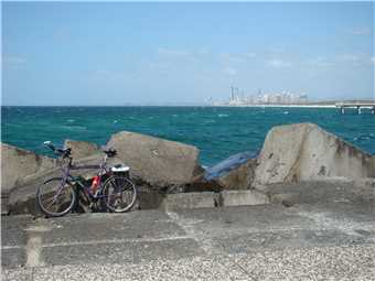 The morning was still sunny and with no breeze, so I plan to ride out to the seaway again, while Marg plans to walk upto the pokies.