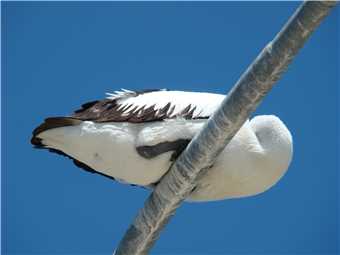 Next stop was the boat launching carpark just before the end of the Seaworld Resort, this was where George amazed me. Weeks ago I was amazed by George standing on a street light, then I saw him laying on a street light. Today, he can't better this, he was balancing and laying on the horizontal round pole that the street light is connected too. He was definitely resting or could have been asleep, as his head was turned 180° and resting along his back, while balancing on the 5" diameter street pole in a decent breeze. see photo.