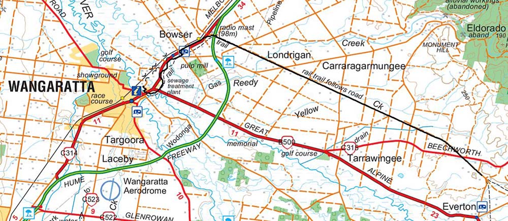 I put Harry Hema in my pocket and away I cycled, down to the river where the rail trail starts, about 8 kms to Bowser, where the rail trail proper starts, about 5kms out to Londrigan, then 8kms to Tarrawingee and finally 6kms to Everton Station arriving at 9:02am. A total of 52kms round trip and about 3.5 hours.