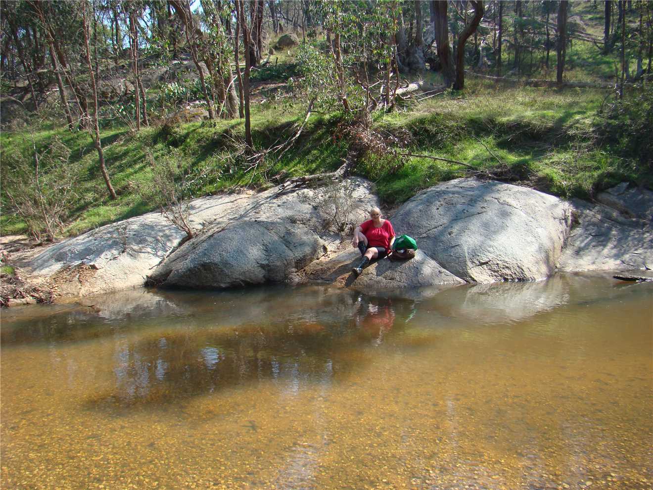 After brekky and at 10:02am, Marg and I headed off to do some more fossicking along Reedy creek. We drove through Eldorado and along Woolshed rd which runs beside Reedy creek. We stopped at a number of nice looking spots, but we didn't find anything. Good news, Marg managed to stay dry all day. A good effort.