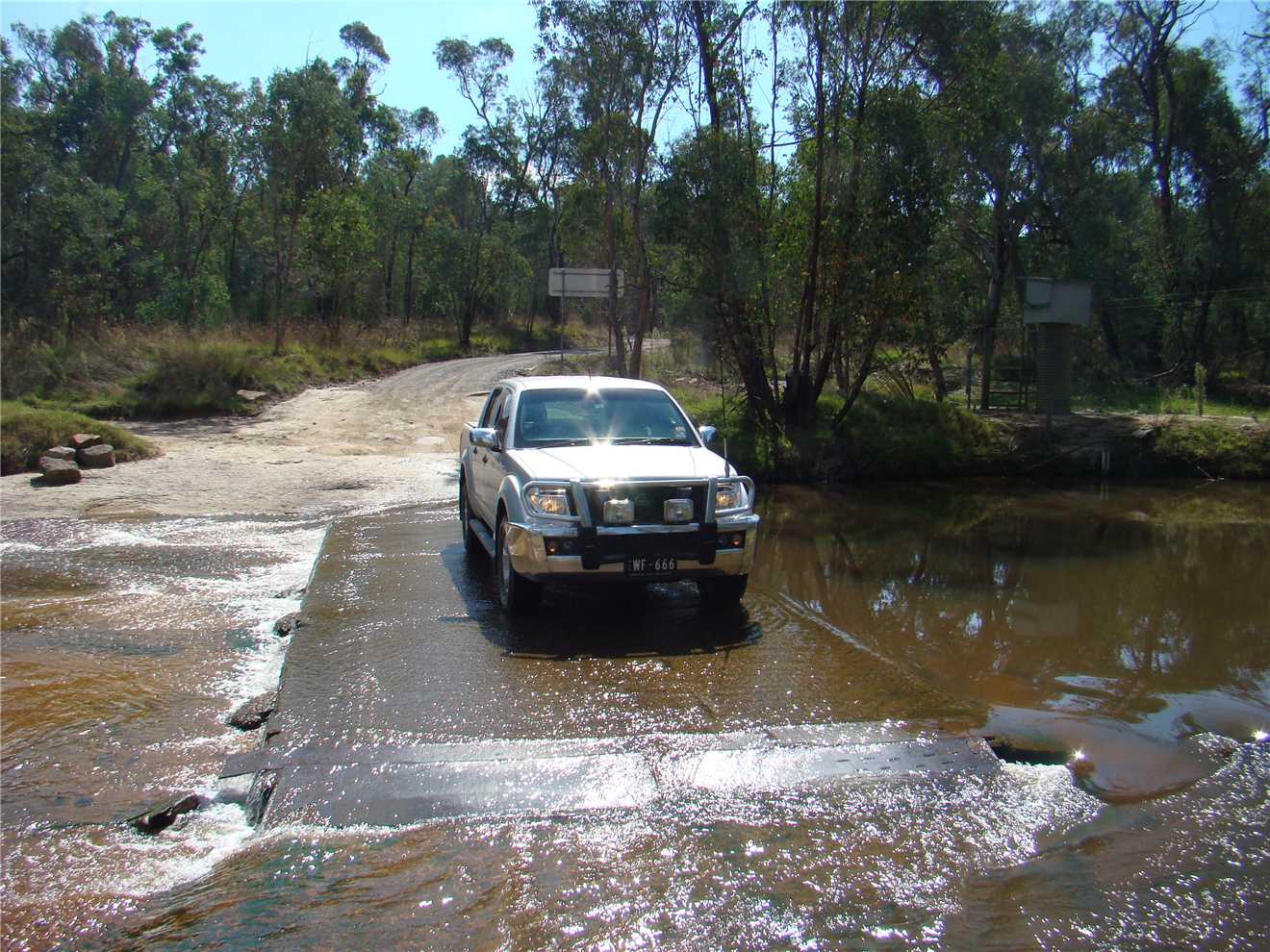 The mighty Navara crossing the teacherous Reedy creek.