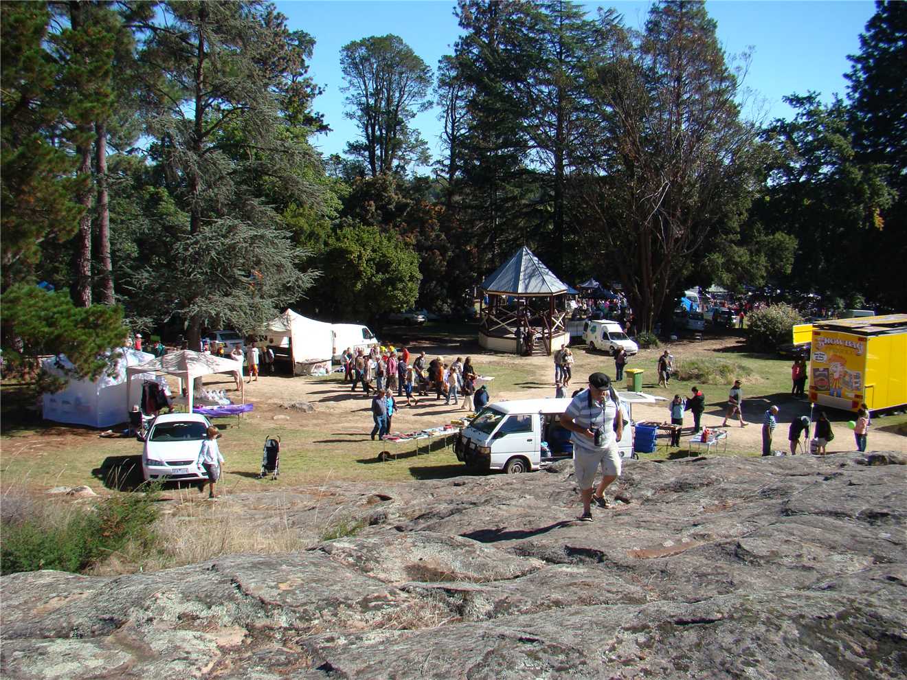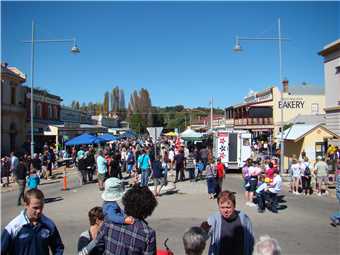After the tour we walked down the main street as it was closed to traffic for the street festival and checked out the various stalls, it was great. Most of the shops were open, the streets were absolutely chockers with people, when it came to buy lunch, our group except for me, decided to go to the Beechworth Bakery, well, it was a tad busier than when Marg and I were there on Thursday. You couldn't get anywhere near the counter, so they came over to me at the fish and chip shop. The Fish'n'chips were yumma. We sat on the gutter in the main street in the shade and ate our lunch. After lunch we walked a complete lap of the festival, before walking back to the mighty Navara.