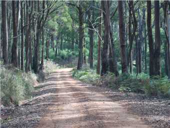 The narrow gravel road.