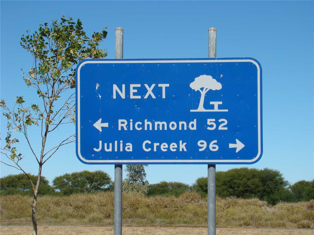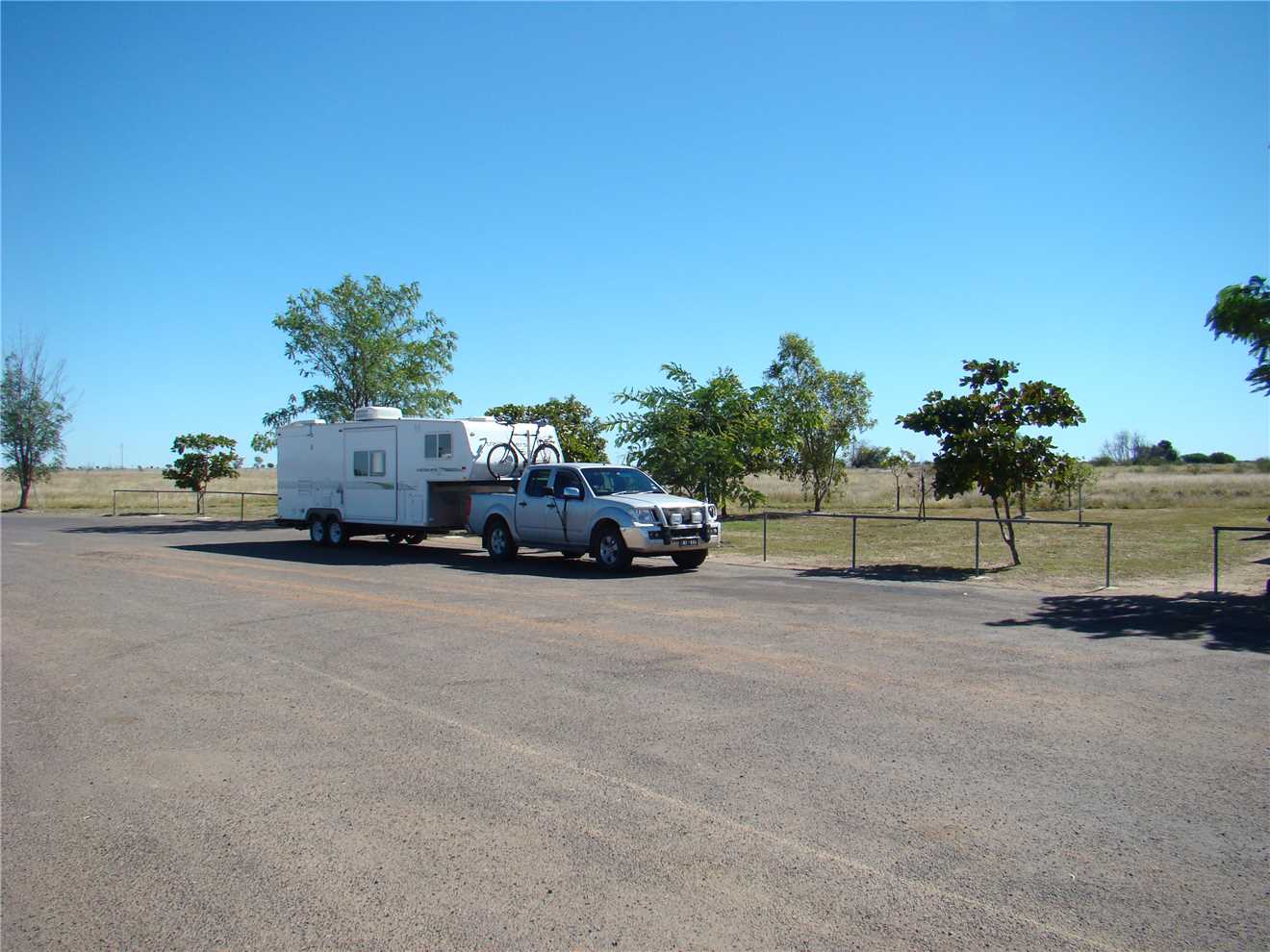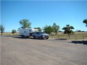We left The Oasis CP at 9:02am after saying goodbye to Ken and Deb, the owners, and headed due east into the sun. Our first stop was at Julia Creek, about 135kms away, our next stop was at Maxwelton, another 100kms further on, this is where I took the photo of the road and rest area. We arrived at Lakeview CP, Richmond at 12:30pm, after an uneventful drive, which is what we like.