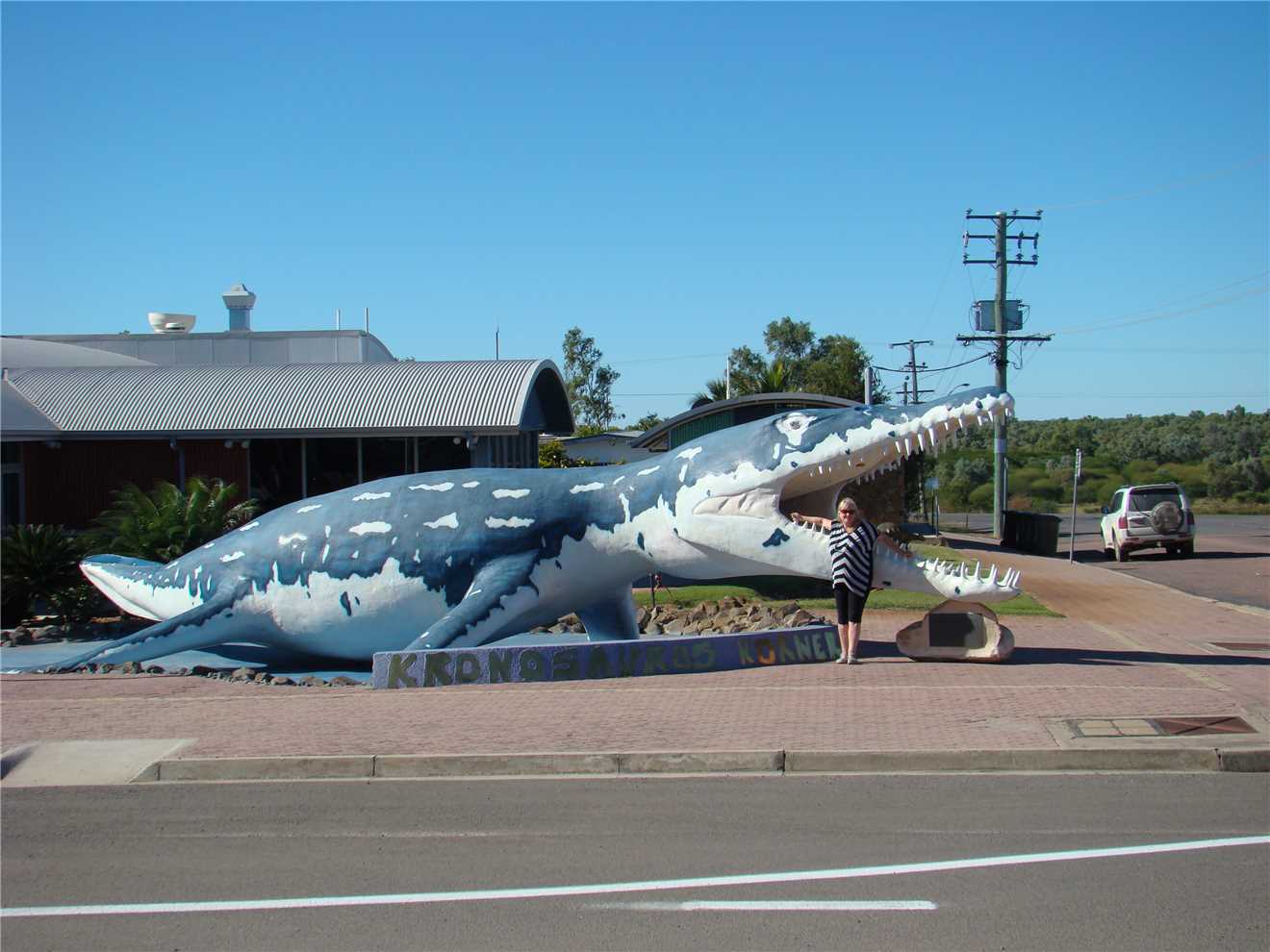 We left camp about 10:30am and went to Kronosaurus Korner to check out its display of fossils, this cost us $10 each, which was good value. It started with a 10 minute video of this area 110 Million years ago, not much has changed, except where we were sitting was 40 meters under water, but apart from that, no change.