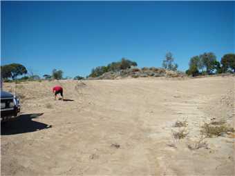We arrived at the partly hidden gate (at 10:03am) that led into the Moonstone Hill fossicking area, the track to the other side of the hill was overgrown to say the least. As we drove along the track the grass was hitting the bonnet, it would have to be 3 feet high. The whole area was covered in this long grass, it really needed a bush fire to go through and burn all the grass, then the fossicking area would be a breeze to work in, but it was a bugger to work. We came to a clearing about 20 feet square where the grass was only a foot high. So we stopped and set up our chairs and I surveyed the hill side looking for diggings, we worked an old digging and got the moonstones that appear in the photos. The larger stones are probably big enough to be 'cut'. We decided that we had enough stones and we wanted to check out Chudleigh Park for Peridot. Before we left, I walked to the top of the hill, which maybe about 50 meters high so the views were
