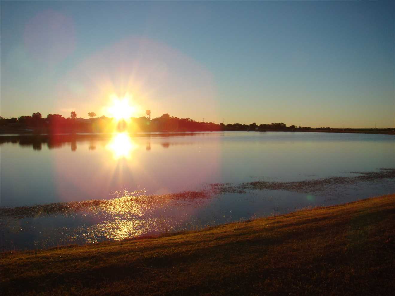 Today's sunrise - the lights around the lake.