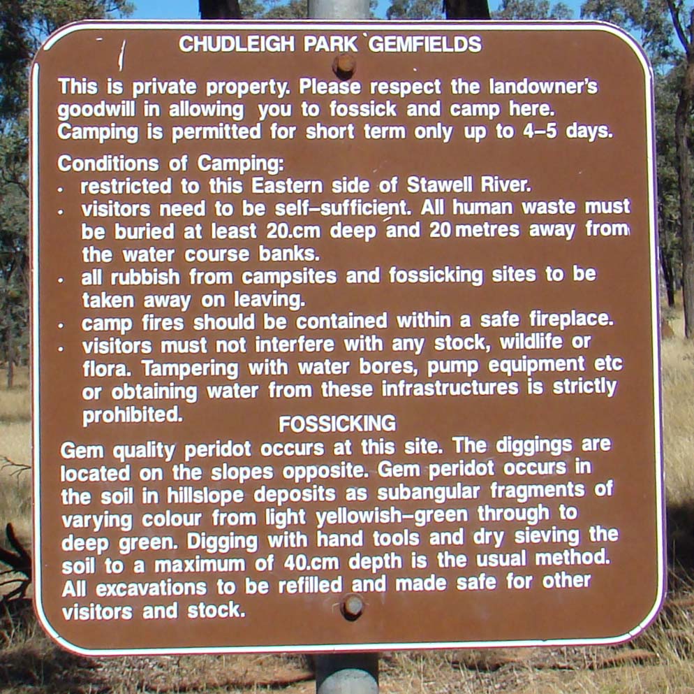 The Chudleigh Park gemfields are 15kms off the 'main' road, through private property, some fossickers just lob and wonder why the owner gets pissed off, SO we rang the Chudleigh Park homestead the previous day and Sarah gave us permission to visit, it's not real rocket science to get approval, I don't understand why some don't. <End of rant> When we arrived at the gemfields, there were 2 campers already setup, Joe an old dude who had been there for 10 days and has found and shown me, bugger all stones, and the other couple had been there 2 days and found a similiar amount. They both told us that we would be pushing shit uphill. We were. Our first obstacle was to drive across the creek, it was covered in rocks and sand, I checked it out and Joe showed me where he crossed and the other couple cross, so we gave it a go, well, we got to the other side, BUT NOT before I put a large dent and scratch on our side steps, as it crashed onto a rock. I continued on to the fossicking area along a goat track, when I parked and checked the damage, the mighty Navara had sustained a major dent and scratch. I was devastated, I was now worried about re-crossing the creek, so I was NOT really interested in fossicking, but we did stay a short time. To find peridot you have to dig into the hard ground and everything was covered in dirt and brownish, so it was extremely hard to find, as we were only staying an hour or so, it was near impossible for us. I stopped digging, as I was going nowhere and we checked out other fossickers' discarded digging piles, we found some Moonstone but no peridot, so we decided that peridot fossicking is not for us. We packed up and headed to the creek. This time I walked the creek and decided to give the rocks a miss and drive on the sand, it was an S shape path in the water. In low range 1st, I entered the water but couldn't turn enough to make the exit track, so I stopped in the middle of the creek and backed up a bit and ended up doing a 3 point turn in a creek that was probably 6" deep and flowing slowly. Anyway, we make it out under our own steam, thank God. We stopped and spoke to both campers and said our goodbyes.