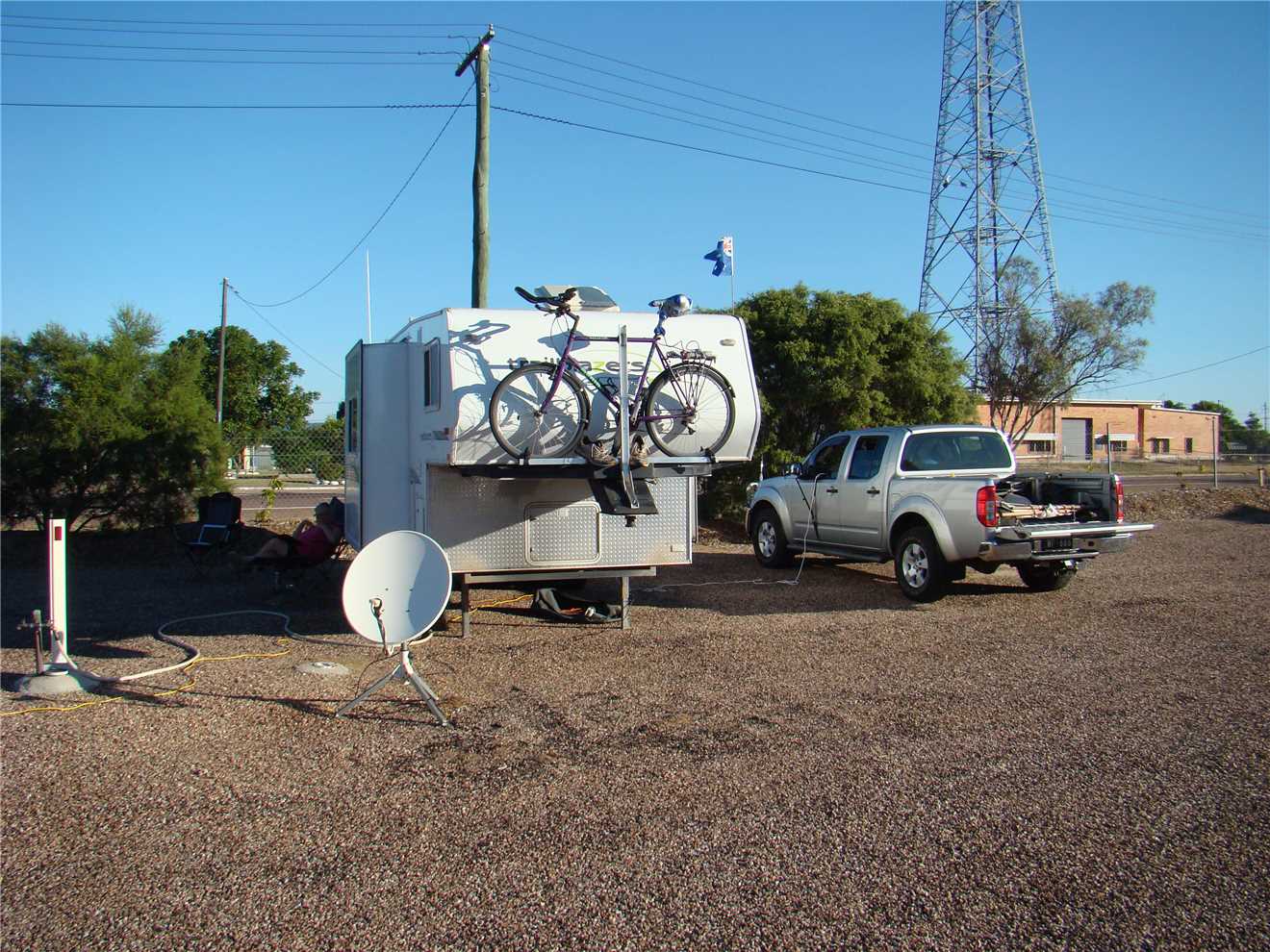 I was up and on the computer by 6:15am, when I noticed outside, that we had a new neighbour, must have arrived sometime overnight. It was a backpacker campervan. Darryl, the caravan park owner, parked his truck behind them, blocking their campervan from going anywhere. About 9:30am, there was still no action next door, so Darryl woke them. Their story is: A young french couple, early 20s, drove from Cairns yesterday, got here at 2am this morning, running on empty and could go no further, so stayed in our CP. Darryl blocked them in, so they couldn't do a 'runner'. In the end, it was all good, they paid and left and were heading for Mount Isa. They have ONE month to drive from Sydney to Cairns to Ayers Rock to Great Ocean Road back to Sydney. They thought that Alice Spring and