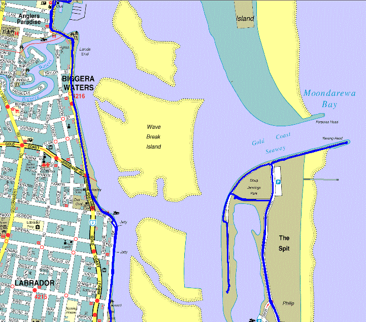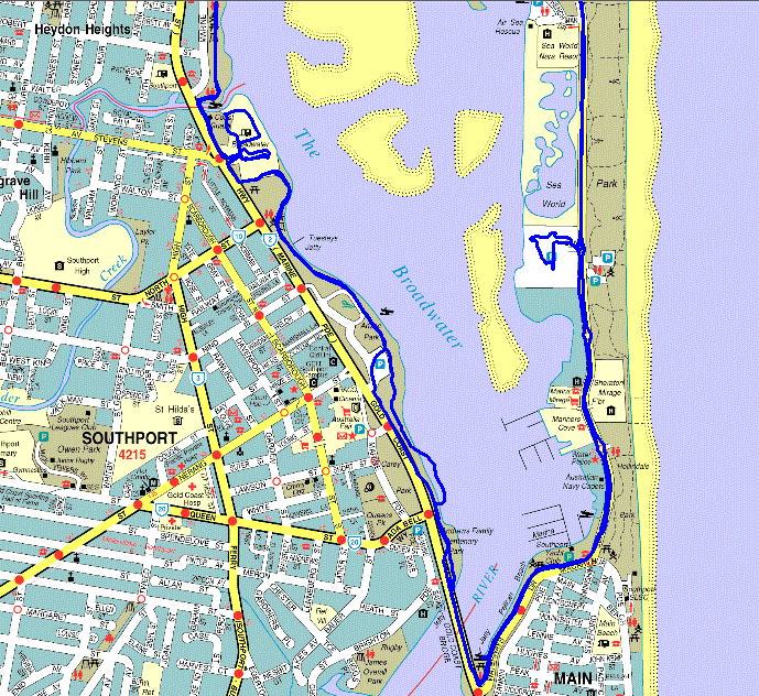 Runaway Bay marina about 10km north of here and then come back and continue past the CP on to the Gold Coast seawall about