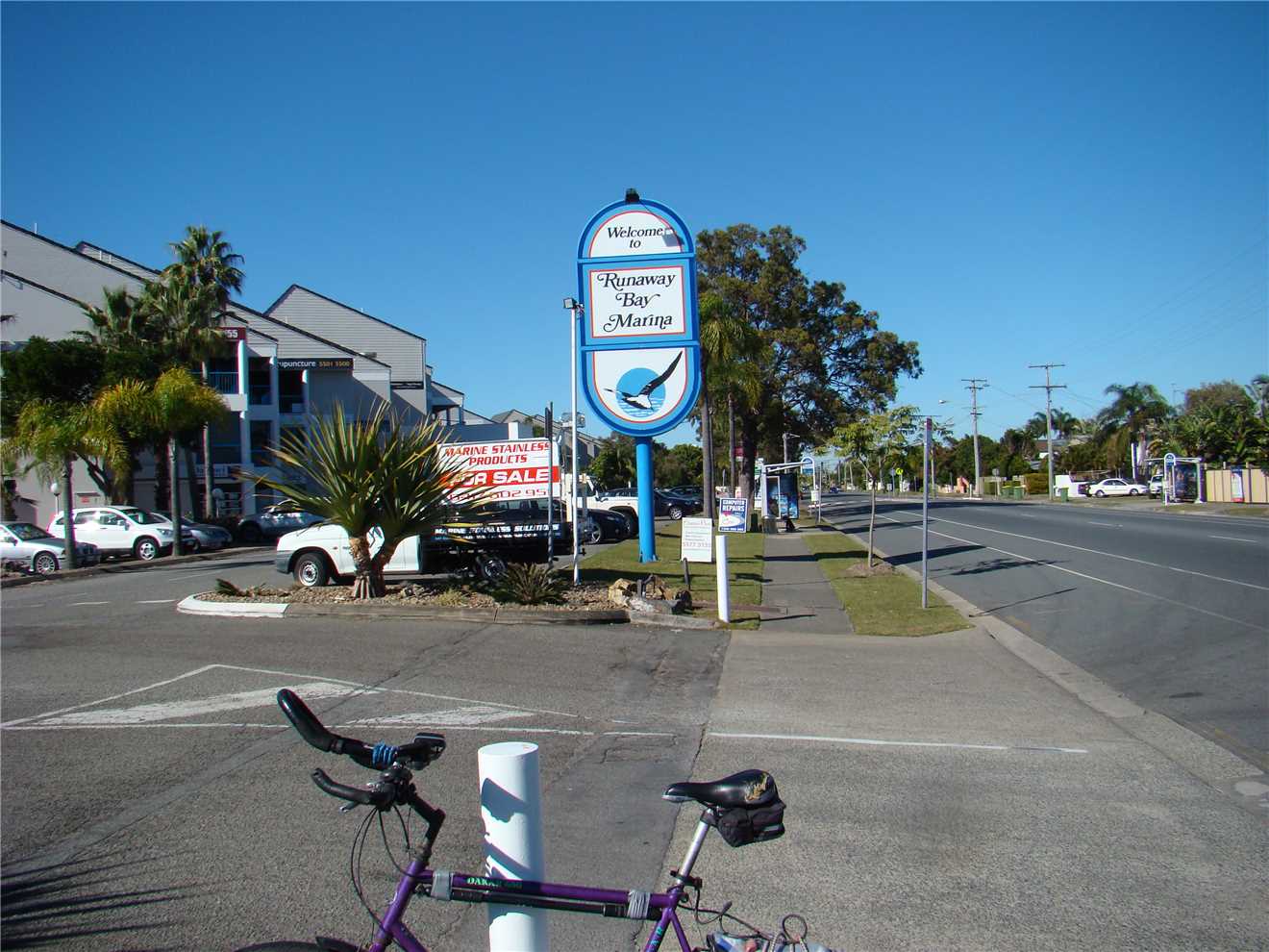 the road bike lane to Runaway Bay Marina for another 3 kms. This is my turnaround spot and on the way south, I then keep riding up most