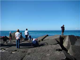 The end of the seawall was very crowded today.