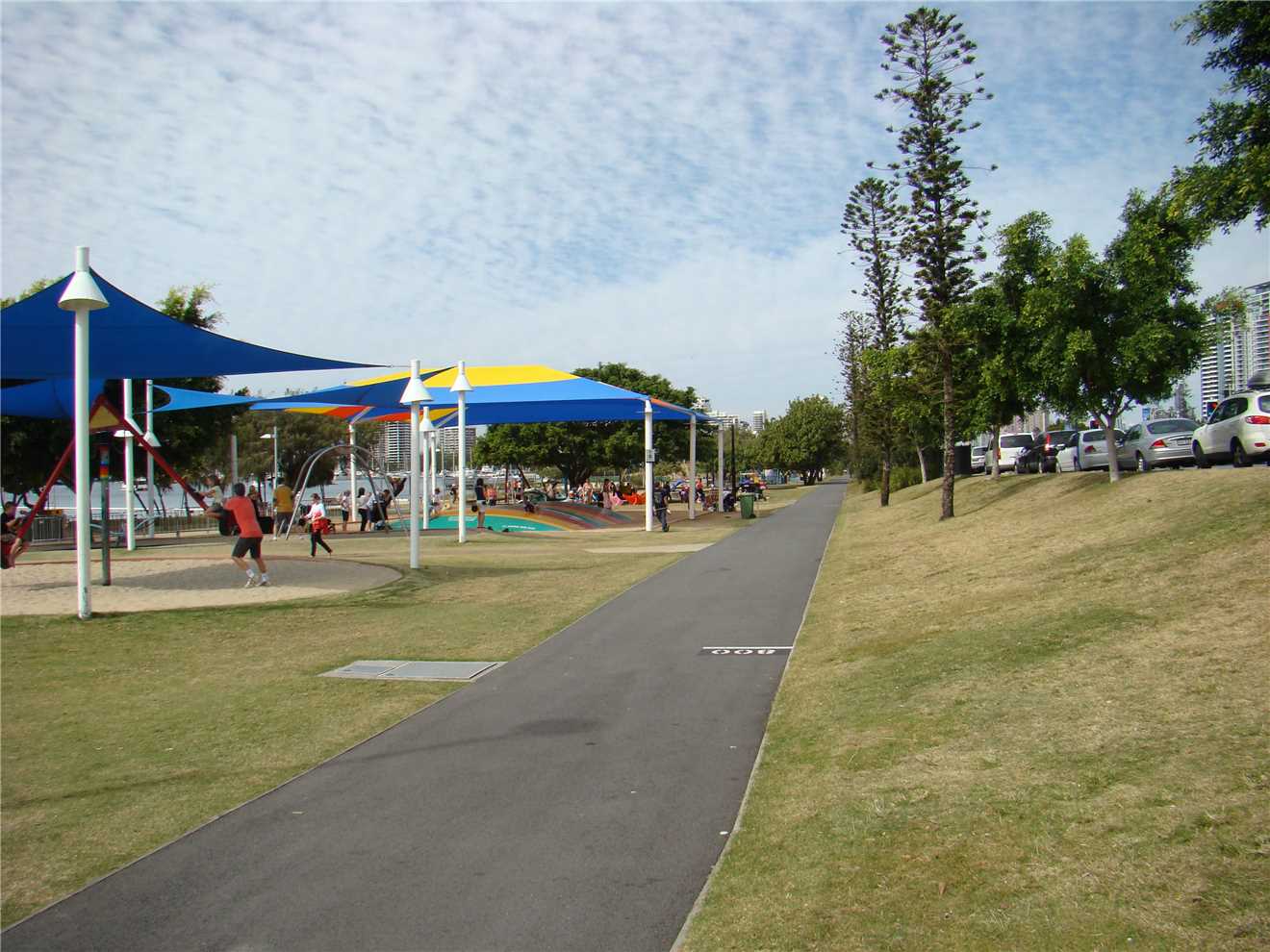Shared park through the Broadwater Parklands opposite Australia Fair.