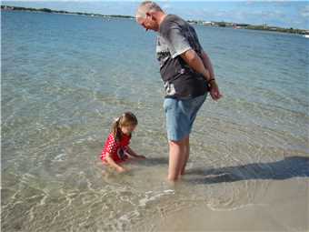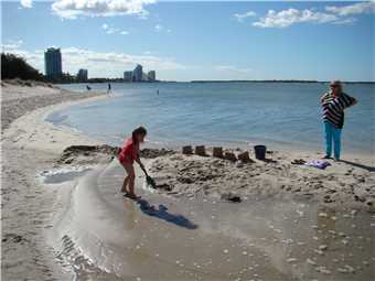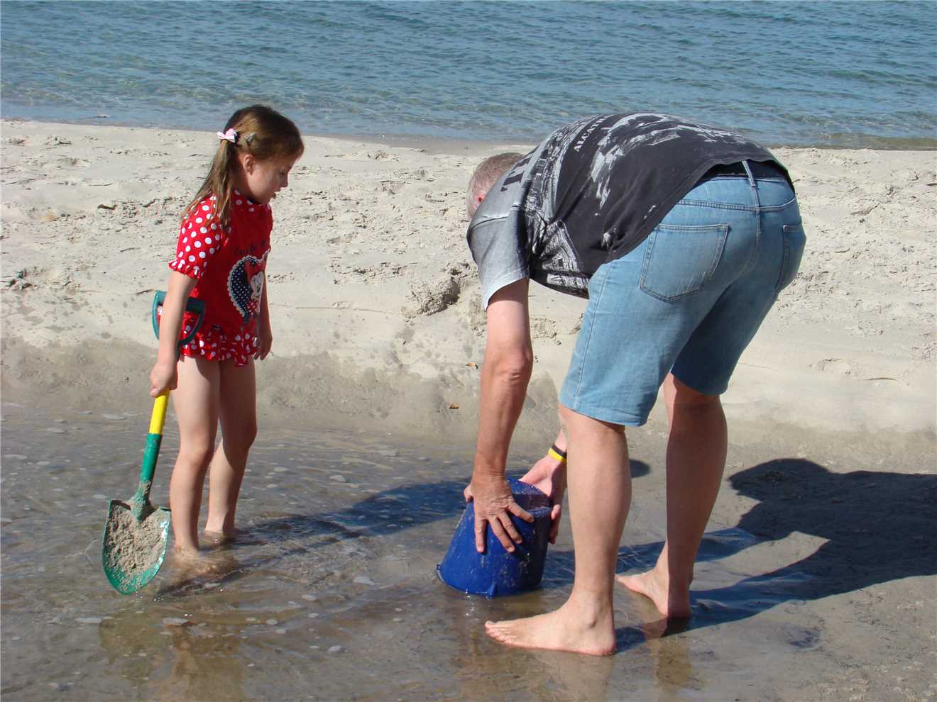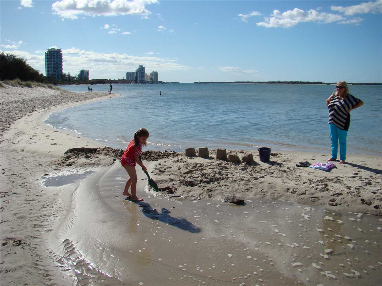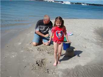 Poppa and Mont building sandcastles.