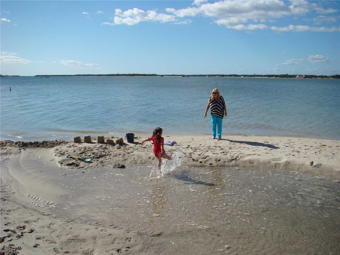 back to camp, where Mont played until we walked the 10 meters to the beach. Mont and I made sand castles and I also dammed up the water, which was