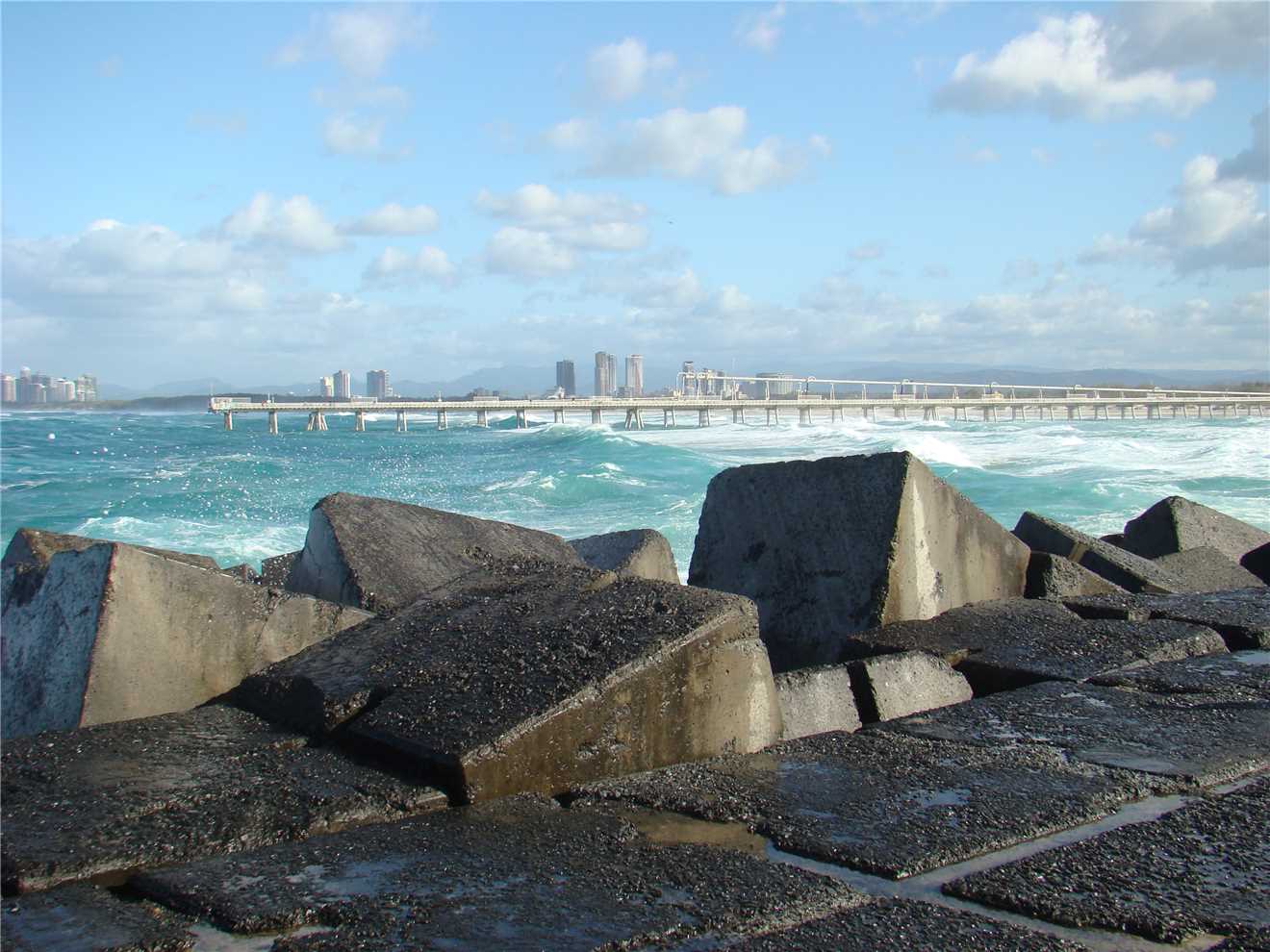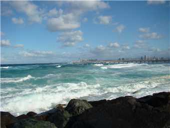 Todays view of Surfers with a Southerly gusting to 59kph.