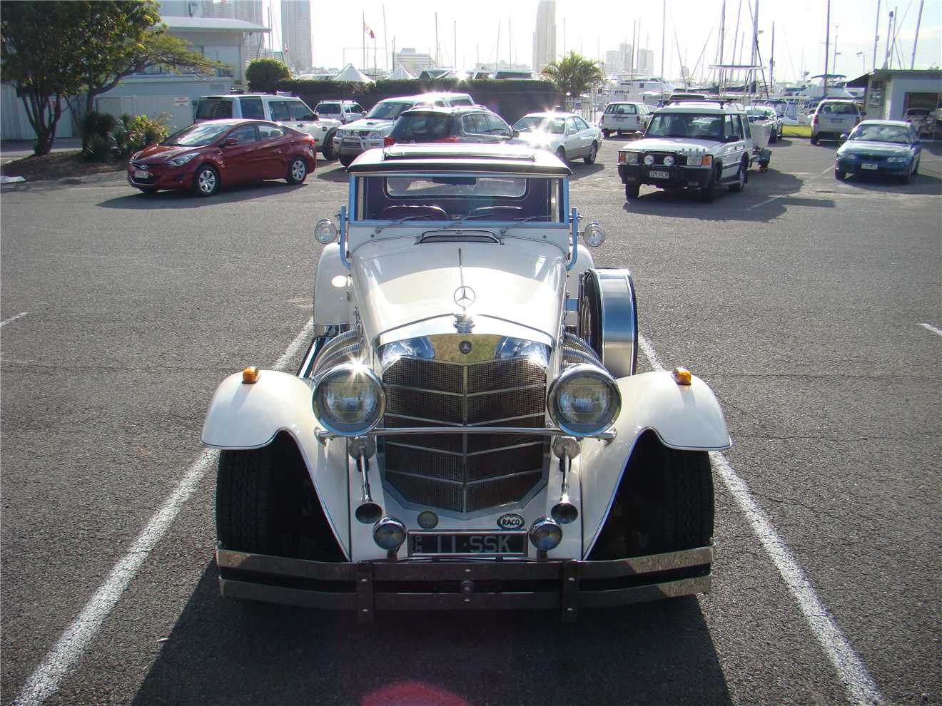 coming over the seawall. While riding past the Southport, I spotted a beautiful old car, it was a Merceds SSk, I am 99.9% sure that it is a replica, because