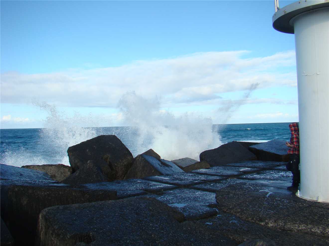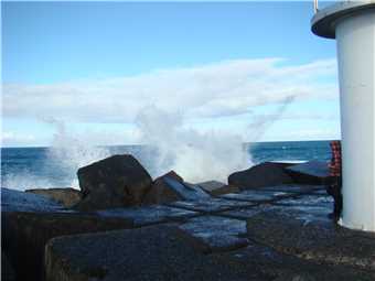 Some of the bigger sets were breaking over the seawall sending spray everywhere.