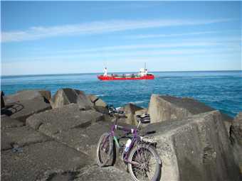 the seawall, there were a minimum of 50 Japanese tourists walking out along the seawall, I managed to ride past them without too drama. I