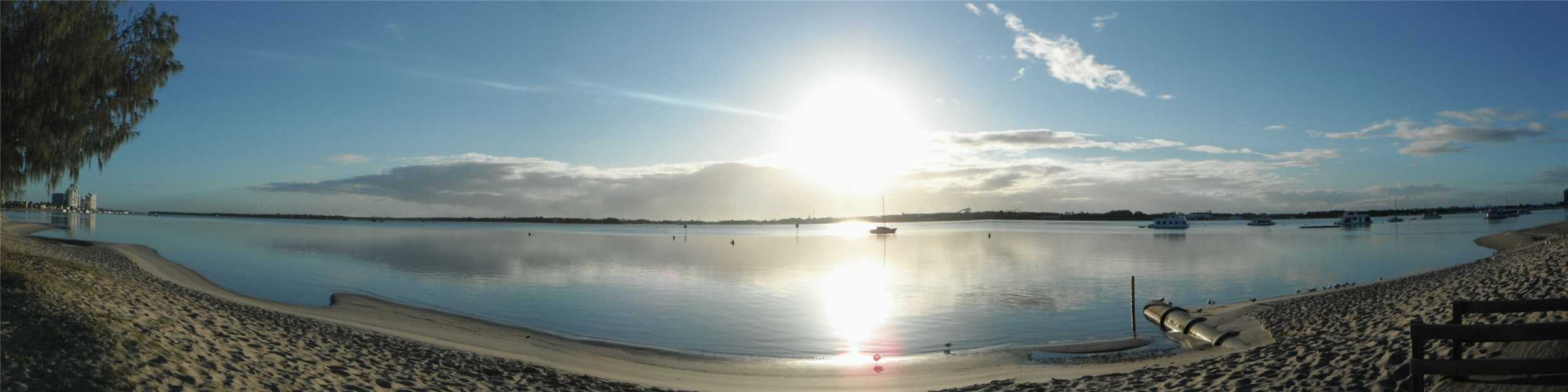 At 7am, there wasn't a puff on wind, so I went outside and took a couple of panoramic photos of the Broadwater, it was so beautiful. see the photo