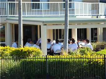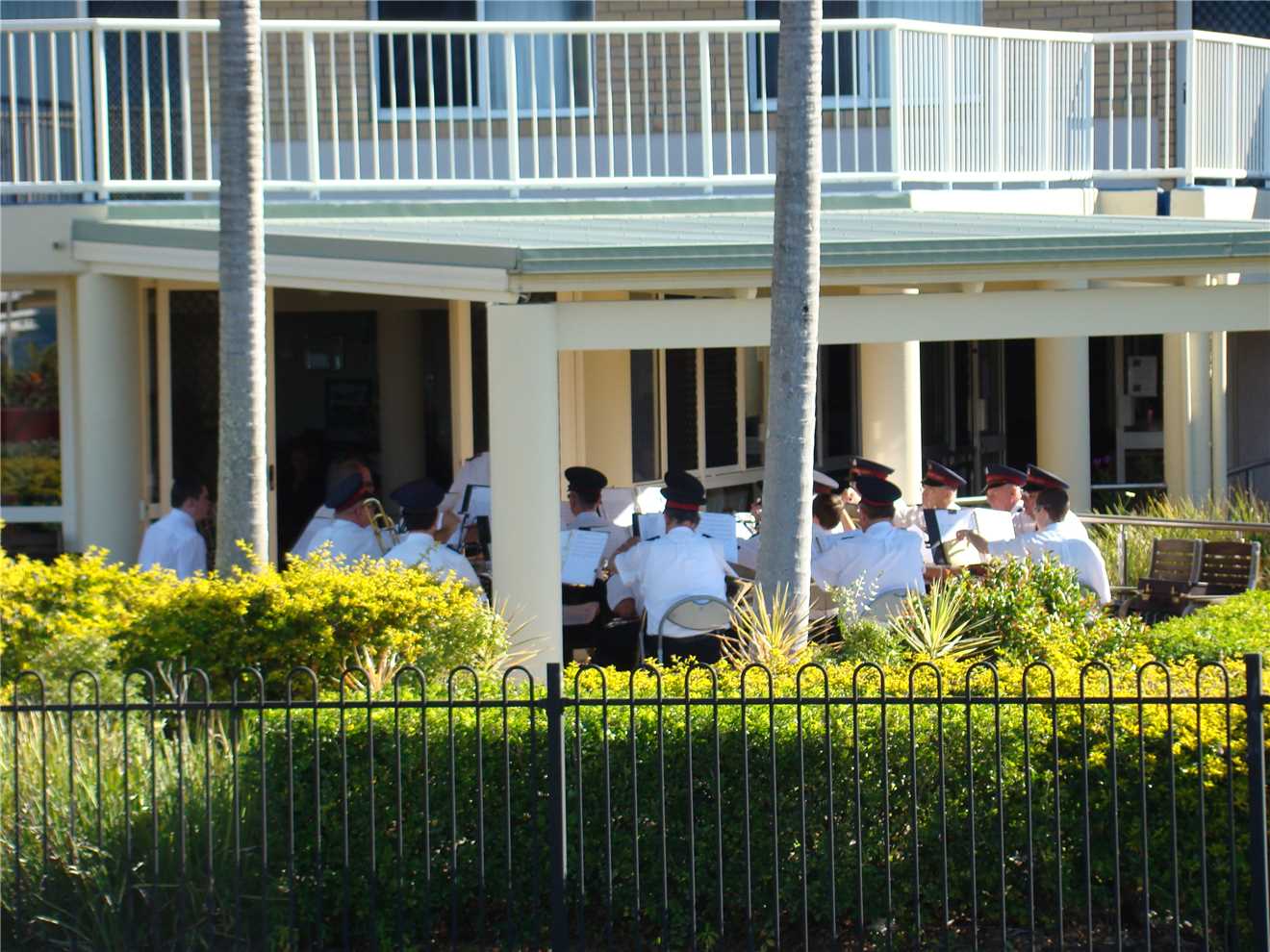 photo, maybe next time. While riding towards Lands End bridge in Biggera Waters, as I past the 'old farts' rest home, there was a band playing in the garden.