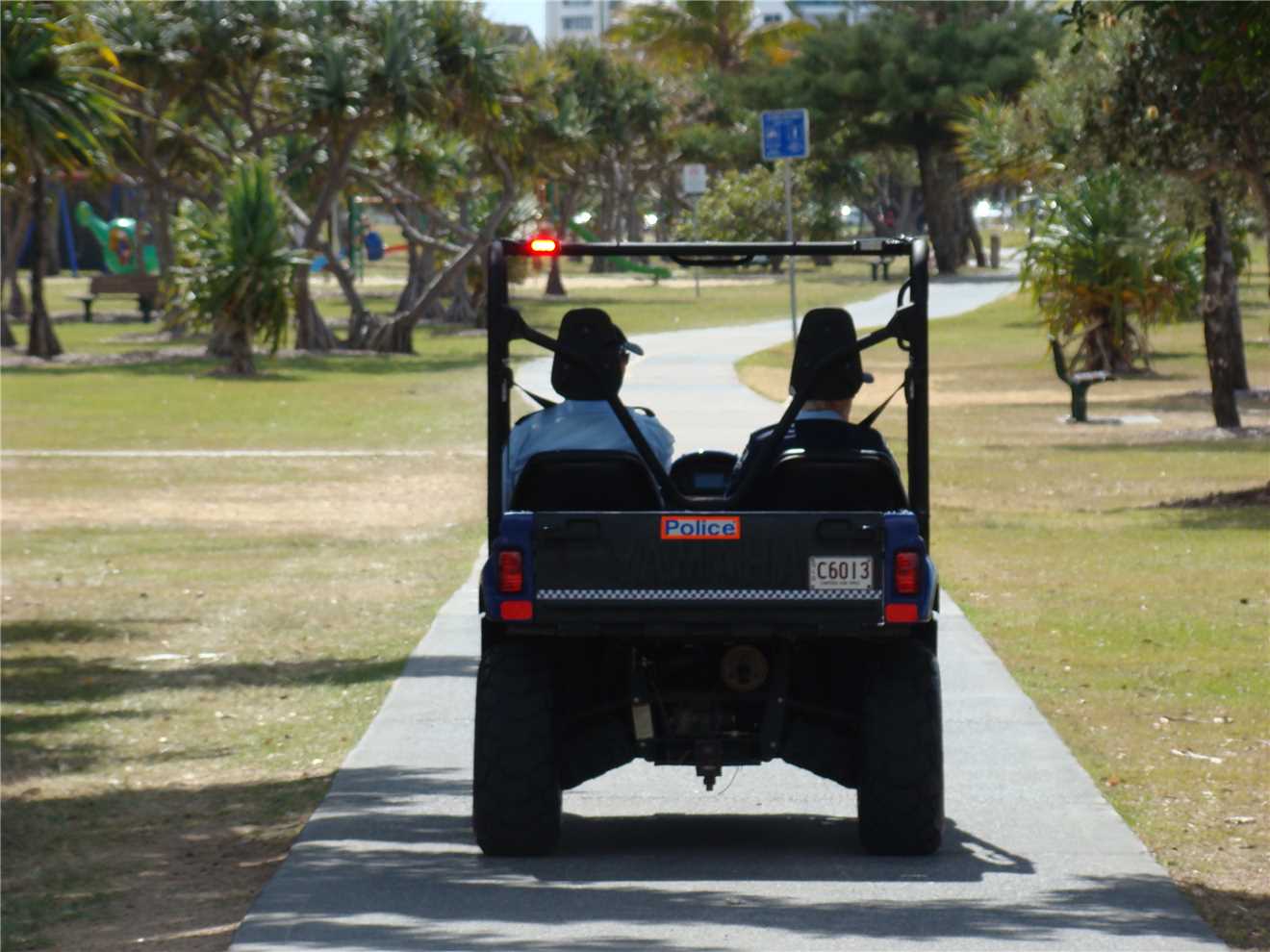 Continued upto past the caravan park to Anglers Paradise, where I came upon 2 police in their 'charoit' so I stopped them for a photo. Then back to camp.